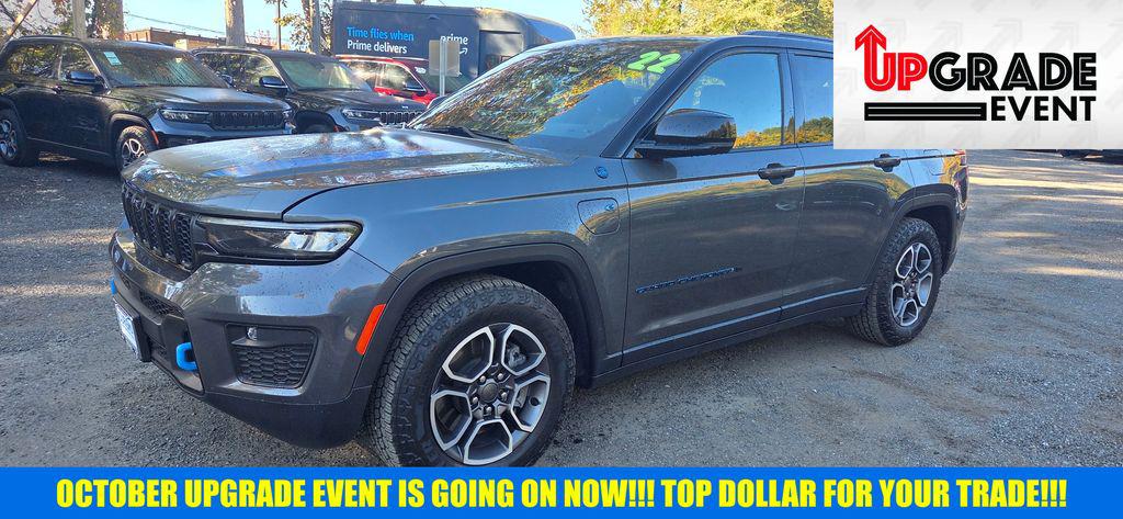 Only available at Ourisman Chrysler of Bowie 2406 Crain Highway Bowie MD 20716! Please call our Sales department at (301) 390-0880 to check availability!This 2022 Baltic Gray Metallic Clearcoat Jeep Grand Cherokee 4xe Trailhawk 4WD is well equipped and includes these features and benefits:. 2.0L I4 DOHC, 4WD. Odometer is 8806 miles below market average!Only available at Ourisman Chrysler of Bowie 2406 Crain Highway Bowie MD 20716! Please call our Sales department at (301) 390-0880 to check availability! .)Used & Certified vehicle Prices do not include tax, tags, title, registration, electronic filing fee, Federal Ev Tax Credit processing fee of $800 (Not required by law), and iKon (Optional $1,295.)