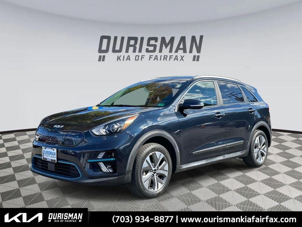 Navigation, Heated Seats, Apple CarPlay & 17 Alloy Wheels!2022 Kia Niro EV EX Gravity Blue with Charcoal InteriorEnjoy the perfect combination of technology, comfort, and zero-emission driving with this fully electric 2022 Kia Niro EV EX! Powered by a 64 kWh Lithium-Ion Polymer Battery and 201-hp Electric Motor, this Niro EV delivers smooth performance and up to 239 miles of all-electric range.Premium features include a 10.25 Touchscreen with Navigation & MapCare, Harman/Kardon Premium Audio, Heated Front Seats, Heated Steering Wheel, Power Drivers Seat with Lumbar Support, Smart Key with Push-Button Start, and Wireless Phone Charging.Advanced safety technologies include Forward Collision-Avoidance Assist, Blind-Spot Collision Warning, Rear Cross-Traffic Collision Warning, Lane Keeping Assist, and Smart Cruise Control with Stop & Go.Added options include the Cold Weather Package (Heated Battery, Heat Pump, Heated Steering Wheel), Cargo Mat, Carpeted Floor Mats, Cargo Cover, and Wheel Locks.Let us help you keep your payments reasonable! Want to Lease or Finance?Hablamos Espanol! Please call us at 703-934-8877Ourisman Kia of Fairfax 10601 Fairfax Blvd, Fairfax, VA 22030