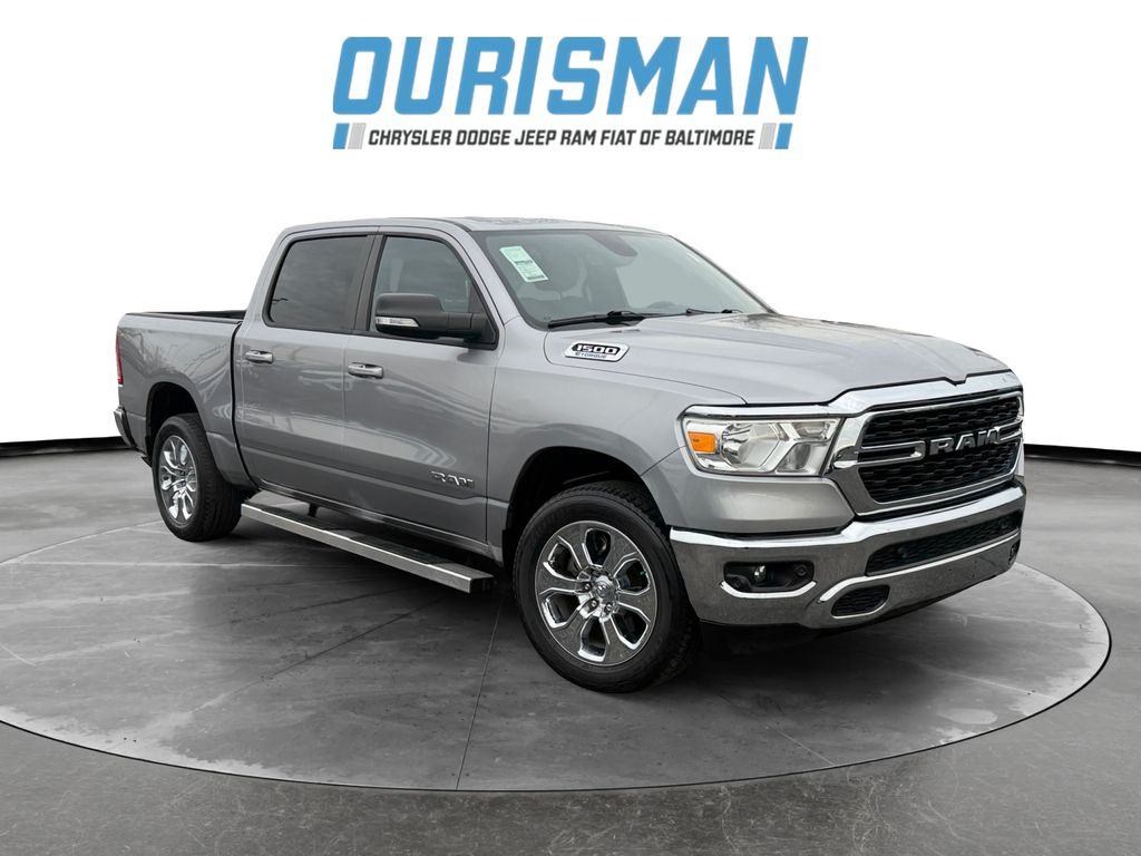 **REMOTE START**HTD FRONT SEATS/STEERING WHEEL**4WDGreat 1-Owner, Off-Lease 2022 Ram 1500 Big Horn Crew Cab 4wd in Billet Silver Metallic Clearcoat with Black InteriorBig Horn Level B Equipment Group (DISC) (115V Auxiliary Power Outlet, 115V Auxiliary Rear Power Outlet, 2nd Row In Floor Storage Bins, 400W Inverter, 4G LTE Wi-Fi Hot Spot, 8.4" Touchscreen Display, Air Conditioning ATC w/Dual Zone Control, Apple CarPlay, Auto-Dimming Exterior Driver Mirror, Auto-Dimming Rear-View Mirror, Black Premium Power Mirrors (GUL), Bluetooth Handsfree Phone & Audio, Class IV Receiver Hitch, Cluster 7.0" TFT Color Display, Connectivity - US/Canada, Exterior Mirrors Courtesy Lamps, Exterior Mirrors w/Supplemental Signals, Foam Bottle Insert (Door Trim Panel), For More Info, Call 800-643-2112, Glove Box Lamp, Google Android Auto, Heated Front Seats, Heated Steering Wheel, Integrated Center Stack Radio, Media Hub w/2 Charge Only USBs, ParkSense Front/Rear Park Assist w/Stop, Power 2-Way Driver Lumbar Adjust, Power 8-Way Driver Seat, Power Adjustable Pedals, Radio: Uconnect 5 W w/8.4" Display, Rear Dome w/On/Off Switch Lamp, Rear Power Sliding Window, Rear Window Defroster, Remote Start System, Security Alarm, SiriusXM Radio Service, SiriusXM Satellite Radio, Sun Visors w/Illuminated Vanity Mirrors, Universal Garage Door Opener, and USB Host Flip), Quick Order Package 23Z Big Horn (Big Horn Badge), 3 Rear Seat Head Restraints, 3.21 Rear Axle Ratio, 4 Way Front Headrests, 4-Wheel Disc Brakes, 48V Belt Starter Generator, 6 Speakers, ABS brakes, Air Conditioning, Alloy wheels, AM/FM radio, Black Exterior Mirrors, Brake assist, Bumpers: chrome, Cloth Bench Seat, Compass, Convex Wide-Angle Mirror Insert, Delay-off headlights, Driver door bin, Dual front impact airbags, Dual front side impact airbags, Electronic Stability Control, Emergency communication system: SiriusXM Guardian, Front anti-roll bar, Front Center Armrest w/Storage, Front fog lights, Front License Plate Bracket, Front reading lights, Front Seat Back Map Pockets, Front wheel independent suspension, Fully automatic headlights, Global Telematics Box Module (TBM), GPS Antenna Input, Heated door mirrors, Illuminated entry, Integrated Voice Command w/Bluetooth, Leather steering wheel, Low tire pressure warning, MOPAR Front & Rear Rubber Floor Mats, Occupant sensing airbag, Outside temperature display, Overhead airbag, Overhead console, Panic alarm, ParkView Rear Back-Up Camera, Passenger door bin, Passenger vanity mirror, Power door mirrors, Power steering, Power windows, Radio data system, Radio: Uconnect 3 w/5" Display, Rear 60/40 Folding Seat, Rear anti-roll bar, Rear seat center armrest, Rear step bumper, Rear Underseat Compartment Storage (DISC), Rear Wheelhouse Liners, Remote keyless entry, Speed control, Split folding rear seat, Steering wheel mounted audio controls, Tachometer, Telescoping steering wheel, Tilt steering wheel, Traction control, Trip computer, Variably intermittent wipers, Voltmeter, Wheels: 18" x 8" Cast-Aluminum Painted, and Wheels: 20" x 9" Aluminum Chrome Clad.For more information call Baltimore's #1 Chrysler Dodge Jeep Ram Superstore . Visit our website for more info. Used & Certified vehicle Prices do not include tax, tags, title, registration, electronic filing fee, processing fee of $800 (Not required by law)