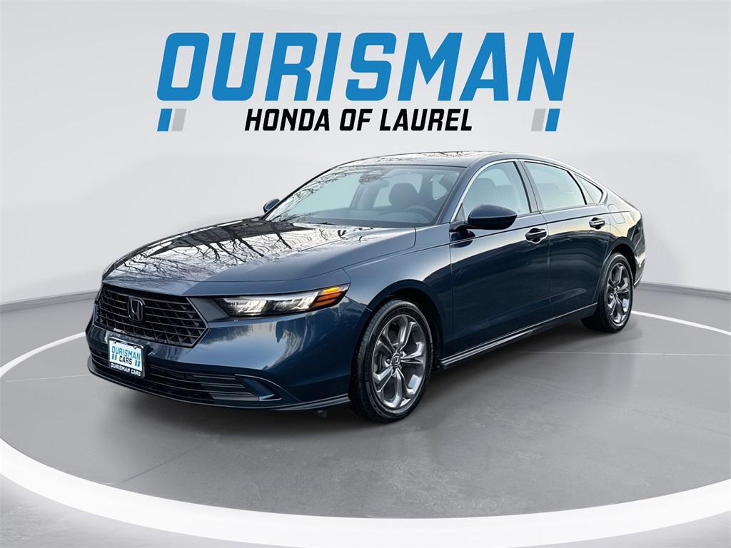 Your savings are biggest at Ourisman Honda of Laurel! We welcome you to come test drive this 2024 Canyon River Blue Metallic Honda Accord EX FWD . We pride ourselves on working very closely with every financial situation to make sure you are happy. This vehicle is well equipped and includes these features and benefits:. CARFAX One-Owner. Clean CARFAX. 29/37 City/Highway MPG Odometer is 5282 miles below market average! ** SUNROOF **, ** HEATED SEATS **, ** BLUETOOH**, ** APPLE CARPLAY **, ** ANDROID AUTO **, ** ADAPTIVE CRUISE CONTROL **, ** BACKUP CAMERA **, Black w/Fabric Seat Trim, 4-Wheel Disc Brakes, 8 Speakers, ABS brakes, Adaptive Cruise Control: Adaptive Cruise Control (ACC) with Low-Speed Follow, AM/FM radio, Apple CarPlay/Android Auto, Auto High-beam Headlights, Blind Spot Information (BSI) System warning, Brake assist, Electronic Stability Control, Emergency communication system: HondaLink Assist, Exterior Parking Camera Rear, Fabric Seat Trim, Four wheel independent suspension, Front Bucket Seats, Heated Front Bucket Seats, Lane departure: Lane Keeping Assist System (LKAS) active, Panic alarm, Power moonroof, Radio: 180-Watt AM/FM Audio System, Rear reading lights, Security system, Speed control, Speed-sensing steering, Speed-Sensitive Wipers, Steering wheel mounted audio controls, Traction control, Wheels: 17"" x 7.5"" Pewter Gray.Prices do not include tax, tags, title, registration, electronic filing fee, processing fee of $800.