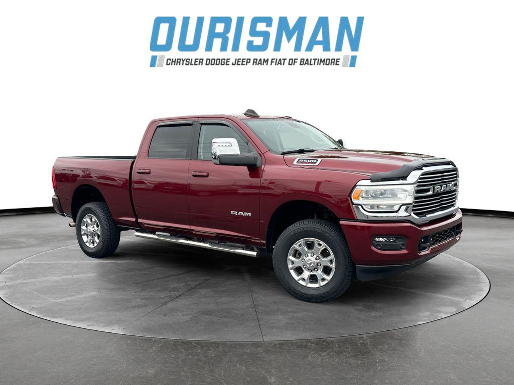 CARFAX One-Owner. This 2024 Delmonico Red Pearlcoat Ram 2500 Laramie 4WD is well equipped and includes these features and benefits:. Clean CARFAX. *** ONE OWNER CLEAN CARFAX ***, 12"" Touchscreen Display, 17 Speaker harman/kardon Premium Sound, 2nd Row In Floor Storage Bins, 4G LTE Wi-Fi Hot Spot, Alexa Built-In, Apple CarPlay, Auto Adjust In Reverse Exterior Mirrors, Auto Dim Exterior Mirror, Auto High Beam Headlamp Control, Auto Power-Folding Mirrors, Auto-Dimming Exterior Passenger Mirror, Blind Spot & Cross Path Detection, Center Hub, Chrome Exterior Mirrors, Connected Travel & Traffic Services, Connectivity - US/Canada, Disassociated Touchscreen Display, Exterior Mirrors Courtesy Lamps, Exterior Mirrors w/Heating Element, Exterior Mirrors w/Memory, Exterior Mirrors w/Supplemental Signals, Foam Bottle Insert (Door Trim Panel), For Details, Visit DriveUconnect.com, For More Info, Call 800-643-2112, Forward & Reverse Utility Lights, Front LED Fog Lamps, Global Telematics Box Module (TBM), Google Android Auto, GPS Antenna Input, GPS Navigation, HD Radio, Heated Second Row Seats, Integrated Voice Command w/Bluetooth, Laramie Level B Equipment Group, LED Reflector Headlamps, LED Tail Lamps, Mirror Running Lights, Off-Road Information Pages, ParkSense Front/Rear Park Assist System, Power Adjust Mirrors, Power Adjustable Convex Aux Mirrors, Power Adjustable Pedals w/Memory, Power Heated Fold Telescopic Mirrors w/Memory, Power Telescoping Mirrors, Protection Group, Quick Order Package 2GH Laramie, Radio: Uconnect 5 Nav w/12.0"" Display, Rain Sensitive Windshield Wipers, Rear Power Sliding Window, Rear Window Defroster, Remote Tailgate Release, Selectable Tire Fill Alert, SiriusXM Radio Service, SiriusXM w/360L, Tow Hooks, Trailer Tow Pages, Wheels: 18"" x 8.0"" Polished Aluminum. 6.4L V8 8-Speed AutomaticFor more information call Baltimore’s #1 Chrysler Dodge Jeep Ram Superstore . Visit our website for more info. Used & Certified vehicle Prices do not include tax, tags, title, registration, electronic filing fee, processing fee of $800 (Not required by law)