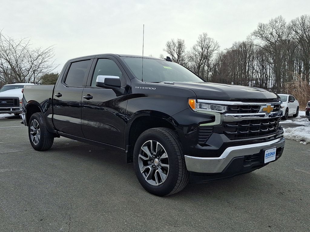 Recent Arrival! CARFAX One-Owner. This 2025 Black Chevrolet Silverado 1500 LT 4WD is well equipped and includes these features and benefits:**MARYLAND STATE INSPECTED**SILVERADO 1500 LT 4X4**2.7L TURBOMAX ENGINE**HEATED CLOTH SEATING**20" PREMIUM WHEELS**ANDROID AUTO / APPLE CARPLAY**CONVENIENCE PACKAGE**ALL STAR EDITION**REAR VIEW CAMERA**. Clean CARFAX. **MARYLAND STATE INSPECTED**, Silverado 1500 LT, 4D Crew Cab, 2.7L I4 Turbocharged DOHC 16V LEV3-SULEV30 310hp, 8-Speed Automatic, 4WD, Black, Jet Black w/Cloth Seat Trim, 10-Way Power Driver Seat w/Lumbar, 12.3" Multicolor Reconfigurable Digital Display, 120-Volt Bed Mounted Power Outlet, 120-Volt Interior Power Outlet, All-Star Edition, Auto-Locking Rear Differential, Bluetooth® For Phone, Chrome Mirror Caps, Color-Keyed Carpeting Floor Covering, Convenience Package, Deep-Tinted Glass, Dual Rear USB Ports (Charge Only), Dual-Zone Automatic Climate Control, Electronic Cruise Control, Front Frame-Mounted Black Recovery Hooks, HD Rear Vision Camera, Heated Driver & Front Outboard Passenger Seats, Heated Steering Wheel, High Capacity Suspension Package, Hitch Guidance, Integrated Trailer Brake Controller, Keyless Open & Start, LED Cargo Area Lighting, Manual Tilt/Telescoping Steering Column, OnStar Services Capable, Power Front Windows w/Driver Express Up/Down, Power Front Windows w/Passenger Express Down, Power Rear Windows w/Express Down, Preferred Equipment Group 2FL, Rear 60/40 Folding Bench Seat (Folds Up), SiriusXM w/360L Trial Subscription, Standard Suspension Package, Steering Wheel Audio Controls, Teen Driver, Tire Pressure Monitoring System, Trailering Package, Wi-Fi Hot Spot Capable, Wrapped Steering Wheel. 4WDPrices do not include tax, tags, title, registration, electronic filing fee, processing fee of $800 (Not required by law), and iKon (Optional $1,295.)