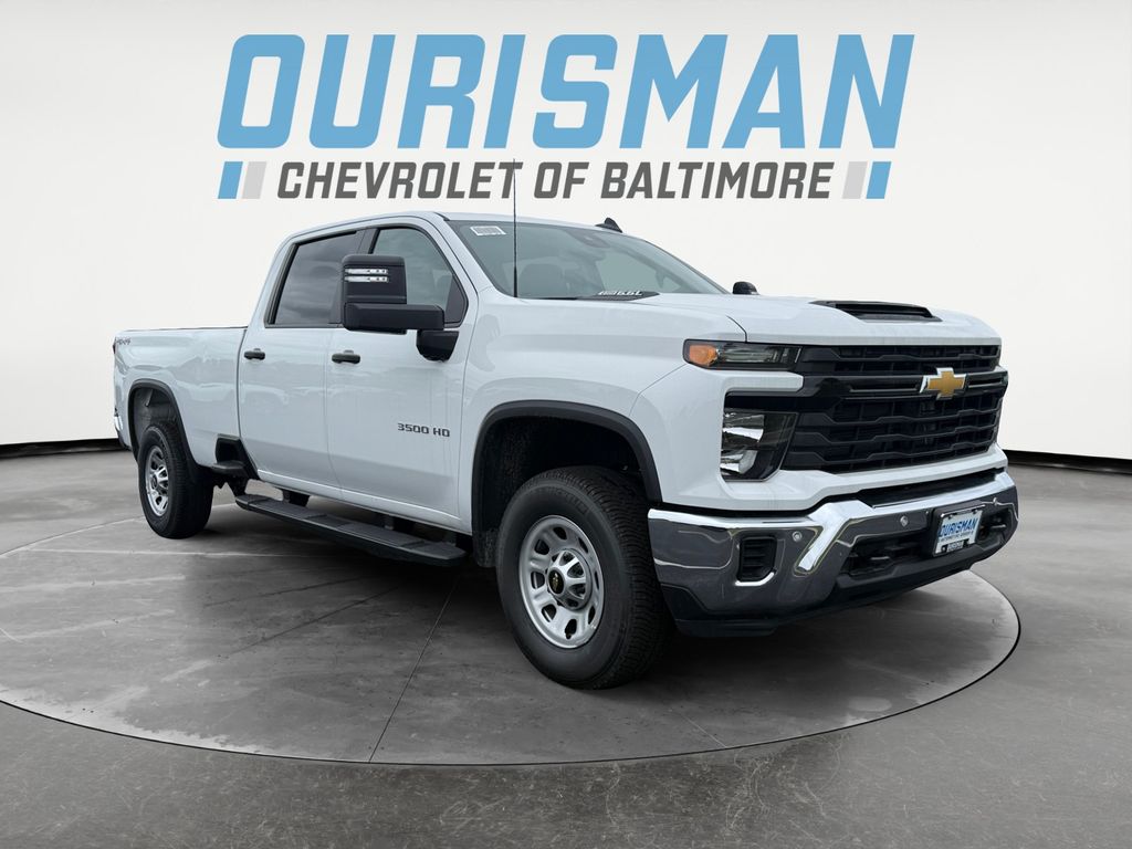 10-Speed Automatic, 4WD, Jet Black Vinyl.This NEW 2025 Summit White Chevrolet Silverado 3500HD Work Truck 4WD is well equipped and includes these features and benefits:Preferred Equipment Group 1WT (170 Amp Alternator, 2-Speed Electronic Shift Transfer Case, 3.5" Diagonal Monochromatic Display DIC, Black Front Bumper, Black Mirror Caps, Black Rear Bumper, Bluetooth® For Phone, Chevrolet Connected Access Capable, Compass Located In Instrument Cluster, HD Rear Vision Camera, High-Visibility Molded in Black Outside Mirrors, Locking Tailgate, Manual Tailgate Function w/No EZ Lift, Manual Tilt-Wheel Steering Column, OnStar Services Capable, Power Door Locks, Power Front Windows w/Driver Express Up/Down, Power Rear Windows w/Express Down, Push Button Start, Rear 60/40 Folding Bench Seat (Folds Up), Remote Keyless Entry, Rubberized-Vinyl Floor Covering, Solar Absorbing Tinted Glass, Standard Tailgate, Steering Wheel Mounted Electronic Cruise Control, and Wi-Fi Hotspot Capable), Suspension Package, WT Convenience Package (Deep-Tinted Glass and Electric Rear-Window Defogger), WT Safety Package (Lane Change Alert w/Side Blind Zone Alert, Rear Chrome Bumper, Rear Cross Traffic Alert, and Ultrasonic Front & Rear Park Assist), 10-Speed Automatic, 4WD, Jet Black Vinyl, 120-Volt Bed Mounted Power Outlet, 120-Volt Interior Power Outlet, 3.73 Rear Axle Ratio, 4-Way Manual Driver Seat Adjuster, 4-Way Manual Passenger Seat Adjuster, 4-Wheel Disc Brakes, 6-Speaker Audio System Feature, 6" Rectangular Black Tubular Assist Steps (LPO), 9 Speakers, ABS brakes, Air Conditioning, AM/FM radio, Apple CarPlay/Android Auto, Auto High-beam Headlights, Auto-Dimming Inside Rear-View Mirror, Brake assist, Chevytec Spray-On Black Bedliner, Compass, Delay-off headlights, Driver door bin, Dual front impact airbags, Dual front side impact airbags, Durabed Pickup Bed, E85 FlexFuel Capable, Electronic Stability Control, Front 40/20/40 Split-Bench Seats w/Lockable Storage, Front anti-roll bar, Front Center Armrest w/Storage, Front Chrome Bumper, Front License Plate Kit, Front reading lights, Front wheel independent suspension, Fully automatic headlights, Heavy-Duty 80 Amp-Hr Battery, Illuminated entry, Low tire pressure warning, Multi-Flex Tailgate, Occupant sensing airbag, Outside temperature display, Overhead airbag, Overhead console, Panic alarm, Passenger door bin, Passenger vanity mirror, Perimeter Lighting, Power steering, Power windows, Power-Adjustable Outside Mirrors, Premium audio system: Chevrolet Infotainment 3, Radio: Chevrolet Infotainment 3 System, Rear reading lights, Rear step bumper, Remote keyless entry, Speed control, Split folding rear seat, Tachometer, Tilt steering wheel, Traction control, Trip computer, Variably intermittent wipers, Vinyl Seat Trim, and Voltmeter.Prices do not include tax, tags, title, freight/destination, registration, electronic filing fee, processing fee of $800 (Not required by law), Ceramic Coating $1,195 (Optional), Interior Protection $795 (Optional), Ourisman Shield $895 (Optional), and iKON $995 (Optional) Includes All GM incentives--Excludes tax, tags, and $800 processing fee. Price includes rebates applicable to qualifying customers.$500 - Chevrolet Consumer Cash Program. Exp. 11/03/2025