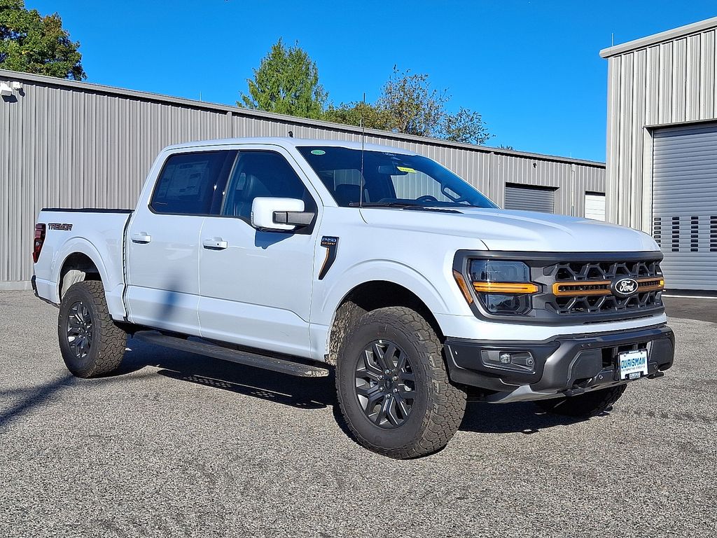 This NEW 2025 Space White Metallic Ford F-150 Tremor 4WD is well equipped and includes these features and benefits:Bed Utility Package (4 Pickup Box Tie-Down Plates, LED Box Lighting, and Power Tailgate), Equipment Group 402A High (2nd Row Heated Seats, Ambient Lighting, Auto-Dimming Rear-View Mirror, Front Axle w/Torsen Differential, Heads-Up Display, Heated Steering Wheel, LED Taillamps, Media Bin Door, Modular Front Bumper & Carbon Black Rear Bumper, Power Glass Heated Sideview Mirrors, Power-Adjustable Pedals w/Memory, Premium Wrapped Steering Wheel, Radio: B&O Unleashed Sound System by Bang & Olufsen, Rain-Sensing Wipers, Two-Speed Automatic AWD w/Mechanical Locking 4WD, Unique Tremor Leather-Trimmed Bucket Seats, and Universal Garage Door Opener), GVWR: 7,100 lbs Payload Package, Mobile Office Package (Console Worksurface, Partitioned Lockable Rear Storage, and Wireless Charging), Tow/Haul Package (Integrated Trailer Brake Controller), 4WD, 4-Wheel Disc Brakes, 8 Speakers, ABS brakes, Adjustable pedals, Air Conditioning, Alloy wheels, AM/FM radio: SiriusXM with 360L, Auto High-beam Headlights, Auto-dimming door mirrors, Auto-dimming Rear-View mirror, Automatic temperature control, Brake assist, Bumpers: body-color, Compass, Delay-off headlights, Driver door bin, Driver vanity mirror, Dual front impact airbags, Dual front side impact airbags, Electronic Locking w/3.73 Axle Ratio, Electronic Stability Control, Emergency communication system: SYNC 4 911 Assist, Front anti-roll bar, Front Bucket Seats, Front Center Armrest, Front dual zone A/C, Front fog lights, Front License Plate Bracket, Front reading lights, Front wheel independent suspension, Fully automatic headlights, Heated door mirrors, Heated front seats, Illuminated entry, Low tire pressure warning, Navigation system: Connected Navigation, Occupant sensing airbag, Outside temperature display, Overhead airbag, Overhead console, Panic alarm, Passenger door bin, Passenger vanity mirror, Power door mirrors, Power driver seat, Power passenger seat, Power steering, Power windows, Radio data system, Radio: B&O Sound System by Bang & Olufsen, Rear reading lights, Rear step bumper, Rear window defroster, Remote keyless entry, SecuriCode Keyless-Entry Keypad, Security system, Speed control, Split folding rear seat, Steering wheel mounted audio controls, SYNC 4 w/Enhanced Voice Recognition, Tachometer, Tailgate Step w/Tailgate Work Surface, Telescoping steering wheel, Tilt steering wheel, Tough Bed Spray-In Bedliner, Traction control, Trip computer, Turn signal indicator mirrors, Twin Panel Moonroof, Unique Sport Cloth 40/Console/40 Power Front Seat, Variably intermittent wipers, Voltmeter, and Wheels: 18" Alloy w/Dark Matte Finish. **MARYLAND STATE INSPECTED**, 4WD. 5.0L V8 10-Speed AutomaticPrice includes dealer discount and all applicable rebates. Some rebates may require financing and approval or other requirements. Contact dealer for details. Price does not include tax, tags, or dealer process fee of $800 (not required by law)