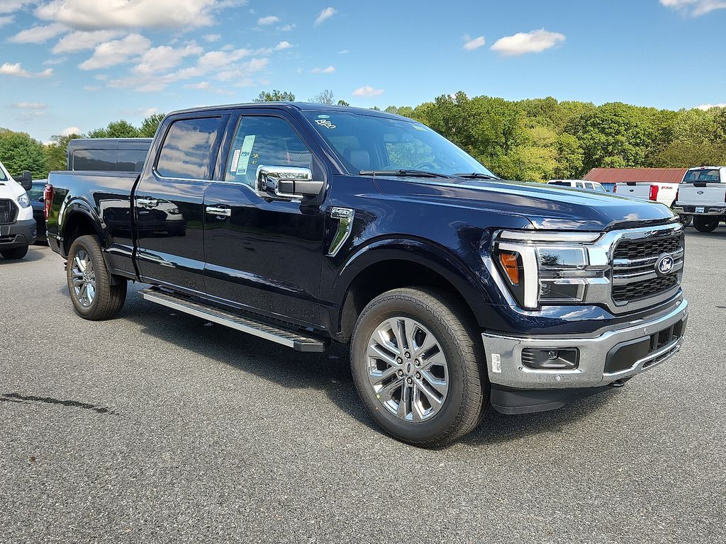 This NEW 2025 Antimatter Blue Metallic Ford F-150 Lariat 4WD is well equipped and includes these features and benefits:Equipment Group 501A Mid (Wheels: 20" Chrome-Like PVD), FX4 Off-Road Package (4x4 FX4 Off-Road Bodyside Decal, Hill Descent Control, Monotube Rear Shocks, Off-Road Tuned Front Shock Absorbers, Rock Crawl Mode, and Tray Style Floor Liner w/o Carpet Mats), Tow/Haul Package, 4WD, 4-Wheel Disc Brakes, 8 Speakers, ABS brakes, ActiveX Trimmed Bucket Seats, Adjustable pedals, Air Conditioning, Alloy wheels, AM/FM radio: SiriusXM with 360L, Auto High-beam Headlights, Auto-dimming door mirrors, Auto-dimming Rear-View mirror, Automatic temperature control, Brake assist, Bumpers: chrome, Chrome wheels, Compass, Delay-off headlights, Driver door bin, Driver vanity mirror, Dual front impact airbags, Dual front side impact airbags, Electronic Stability Control, Emergency communication system: SYNC 4 911 Assist, Front anti-roll bar, Front Bucket Seats, Front Center Armrest, Front dual zone A/C, Front fog lights, Front License Plate Bracket, Front reading lights, Front wheel independent suspension, Fully automatic headlights, Garage door transmitter, Heated door mirrors, Heated front seats, Heated steering wheel, Illuminated entry, Low tire pressure warning, Memory seat, Navigation system: Connected Navigation, Occupant sensing airbag, Outside temperature display, Overhead airbag, Overhead console, Panic alarm, Passenger door bin, Passenger vanity mirror, Pedal memory, Power door mirrors, Power driver seat, Power passenger seat, Power steering, Power windows, Radio data system, Radio: B&O Sound System by Bang & Olufsen, Rain sensing wipers, Rear reading lights, Rear seat center armrest, Rear step bumper, Rear window defroster, Remote keyless entry, SecuriCode Keyless-Entry Keypad, Security system, Speed control, Split folding rear seat, Steering wheel mounted audio controls, SYNC 4 w/Enhanced Voice Recognition, Tachometer, Telescoping steering wheel, Tilt steering wheel, Tough Bed Spray-In Bedliner, Traction control, Trip computer, Turn signal indicator mirrors, Variably intermittent wipers, Ventilated front seats, Voltmeter, Wheel Well Liner, and Wheels: 18" Chrome-Like PVD. **MARYLAND STATE INSPECTED**, 4WD. 3.5L V6 EcoBoost 10-Speed AutomaticPrice includes dealer discount and all applicable rebates. Some rebates may require financing and approval or other requirements. Contact dealer for details. Price does not include tax, tags, or dealer process fee of $800 (not required by law)