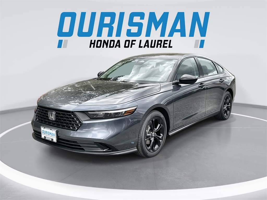 Ourisman Honda of Laurel welcomes you to come test drive this NEW 2025 Meteorite Gray Metallic Honda Accord SE FWD is well equipped and includes these features and benefits:Blk Lth Cloth, 4-Wheel Disc Brakes, 8 Speakers, ABS brakes, Adaptive Cruise Control: Adaptive Cruise Control (ACC) with Low-Speed Follow, Air Conditioning, Alloy wheels, AM/FM radio, Apple CarPlay/Android Auto, Auto High-beam Headlights, Automatic temperature control, Blind Spot Information (BSI) System warning, Brake assist, Bumpers: body-color, Compass, Delay-off headlights, Driver door bin, Driver vanity mirror, Dual front impact airbags, Dual front side impact airbags, Electronic Stability Control, Emergency communication system: HondaLink Assist, Exterior Parking Camera Rear, Fabric Seat Trim, Four wheel independent suspension, Front anti-roll bar, Front Bucket Seats, Front Center Armrest, Front dual zone A/C, Front reading lights, Fully automatic headlights, Heated door mirrors, Heated Front Bucket Seats, Heated front seats, Illuminated entry, Knee airbag, Lane departure: Lane Keeping Assist System (LKAS) active, Low tire pressure warning, Occupant sensing airbag, Outside temperature display, Overhead airbag, Overhead console, Panic alarm, Passenger door bin, Passenger vanity mirror, Power door mirrors, Power driver seat, Power moonroof, Power steering, Power windows, Radio data system, Radio: 180-Watt Audio System, Rear anti-roll bar, Rear reading lights, Rear seat center armrest, Rear side impact airbag, Rear window defroster, Remote keyless entry, Security system, Speed control, Speed-sensing steering, Speed-Sensitive Wipers, Split folding rear seat, Steering wheel mounted audio controls, Tachometer, Telescoping steering wheel, Tilt steering wheel, Traction control, Trip computer, Variably intermittent wipers, and Wheels: 17"" x 7.5J Berlina Black. 29/37 City/Highway MPG Blk Lth Cloth.Prices do not include tax, tags, title, registration, electronic filing fee, processing fee of $800 (Not required by law), iKon (Optional $1,295.), And any reconditioning fees.