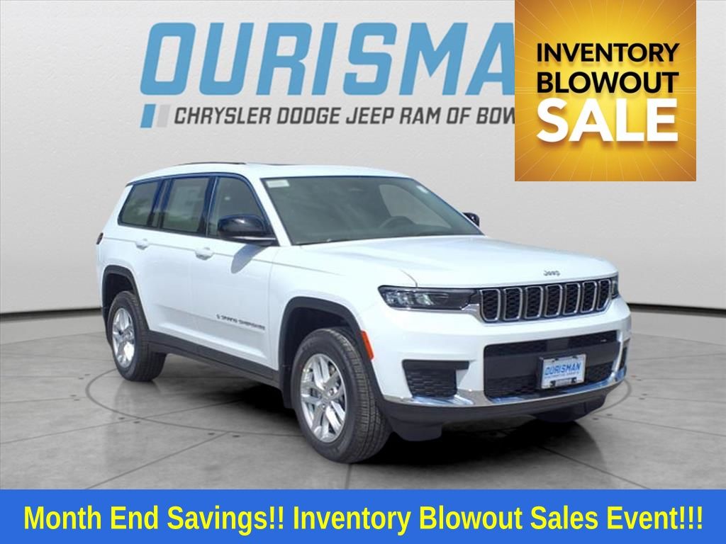 This NEW 2025 Bright White Clearcoat Jeep Grand Cherokee L Laredo 4WD is well equipped and includes these features and benefits:MOPAR Finishing Package (MOPAR Front Splash Guards, MOPAR Paint Protection Film, and MOPAR Rear Splash Guards w/Jeep Logo), Quick Order Package 23D Laredo X (Laredo X and Power Sunroof), 3.45 Rear Axle Ratio, 3rd row seats: split-bench, 4-Wheel Disc Brakes, 6 Speakers, ABS brakes, Air Conditioning, Alloy wheels, AM/FM radio: SiriusXM, Anti-whiplash front head restraints, Automatic temperature control, Brake assist, Bumpers: body-color, Cloth Seats, Compass, Delay-off headlights, Driver door bin, Driver vanity mirror, Dual front impact airbags, Dual front side impact airbags, Electronic Stability Control, Emergency communication system, Four wheel independent suspension, Front anti-roll bar, Front Bucket Seats, Front Center Armrest w/Storage, Front dual zone A/C, Front License Plate Bracket, Front reading lights, Fully automatic headlights, Heated door mirrors, Illuminated entry, Knee airbag, Low tire pressure warning, Manual Fold Seatbacks, Model Year Tracking, Normal Duty Suspension, Occupant sensing airbag, Outside temperature display, Overhead airbag, Overhead console, Panic alarm, ParkView Rear Back-Up Camera, Passenger door bin, Passenger vanity mirror, Power door mirrors, Power driver seat, Power steering, Power windows, Radio data system, Radio: Uconnect 5 w/8.4"" Display, Rear air conditioning, Rear anti-roll bar, Rear reading lights, Rear window defroster, Rear window wiper, Reclining 3rd row seat, Remote keyless entry, Security system, Speed control, Speed-Sensitive Wipers, Split folding rear seat, Spoiler, Steering wheel mounted audio controls, Tachometer, Telescoping steering wheel, Tilt steering wheel, Traction control, Trip computer, Variably intermittent wipers, Voltmeter, and Wheels: 18"" x 8.0"" Fully Painted Aluminum. 8-Speed Automatic 3.6L V6 24V VVTMost prices include applicable manufacturer rebates and incentives (dealer retains incentives). Incentives and pricing may depend on manufacturer incentive program expiration dates which can varyNew Vehicle Prices do not include tax, tags, title, freight/destination, registration, electronic filing fee, processing fee of $800 (Not required by law), and iKon (Optional $1,295.) All prices apply to local areas MD VA DC, Prices based on other areas my vary, Please contact dealer. Price includes: $2000 - 2025 National Retail Bonus Cash . Exp. 11/03/2025 $500 - 2025 National Jeep Monopoly Money Bonus Cash . Exp. 11/03/2025