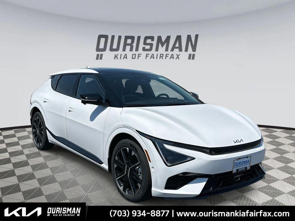 Priced below KBB Fair Purchase Price!2025 Kia EV6 GT-Line In Stock AWD Glacier White Pearl14 Speakers, 4-Wheel Disc Brakes, ABS brakes, Air Conditioning, Alloy wheels, AM/FM radio: SiriusXM, Apple CarPlay & Android Auto, Auto High-beam Headlights, Auto-dimming Rear-View mirror, Automatic temperature control, Brake assist, Bumpers: body-color, Cargo Cover, Carpeted Floor Mats, Delay-off headlights, Driver door bin, Driver vanity mirror, Dual front impact airbags, Dual front side impact airbags, Electronic Stability Control, Emergency communication system, Four wheel independent suspension, Front anti-roll bar, Front Bucket Seats, Front Center Armrest, Front dual zone A/C, Front reading lights, Fully automatic headlights, Garage door transmitter: HomeLink, GT-Line Mud Guards, Heads-Up Display, Heated & Ventilated Front Seats (3-Stage), Heated door mirrors, Heated front seats, Heated rear seats, Heated steering wheel, Illuminated entry, Knee airbag, Low tire pressure warning, Memory seat, Navigation system: AVN 5.0 Navigation System, Occupant sensing airbag, Outside temperature display, Overhead airbag, Overhead console, Panic alarm, Passenger door bin, Passenger vanity mirror, Power door mirrors, Power driver seat, Power Liftgate, Power moonroof, Power passenger seat, Power steering, Power windows, Radio: Meridian Premium Audio System, Rain sensing wipers, Rear anti-roll bar, Rear seat center armrest, Rear side impact airbag, Rear window defroster, Remote keyless entry, Security system, Speed control, Speed-sensing steering, Split folding rear seat, Spoiler, Sport steering wheel, Steering wheel mounted audio controls, Telescoping steering wheel, Tilt steering wheel, Traction control, Trip computer, Turn signal indicator mirrors, Variably intermittent wipers, Vegan Leather Seat Trim, Ventilated front seats, and Wheels: 8.0J x 20"" Black Painted Alloy Prices do not include tax, freight, tags, title, registration, electronic filing fee, processing fee of $999 (Not required by law), and iKon (Optional $1,295.)Let us help you keep your payments reasonable! Want to Lease or Finance? ***HABLA ESPAÑOL*** Please call us at 703-934-8877 @ Ourisman Kia of Fairfax 10601 Fairfax Blvd, Fairfax, Va 22030. Price includes: $10000 - Kia Customer Cash. Exp. 12/01/2025