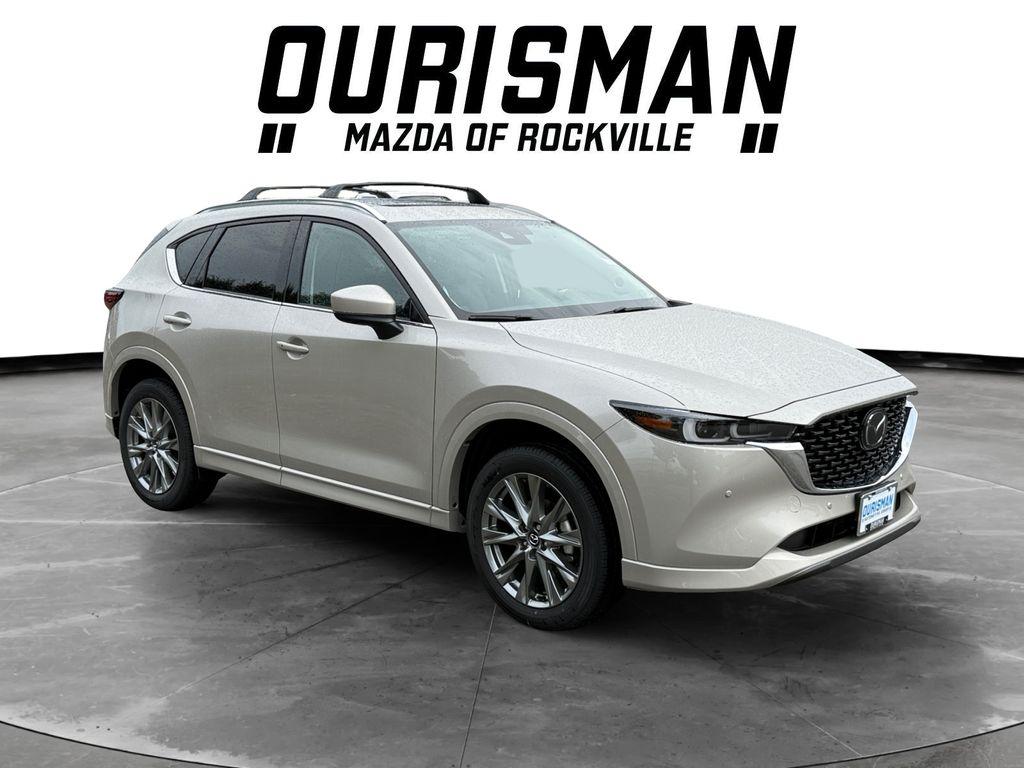 This NEW 2025 Quartz Metallic Mazda CX-5 2.5 S Premium Plus Package AWD is well equipped and includes these features and benefits:Roof Rails & Cross Bars Package, 10 Speakers, 4-Wheel Disc Brakes, ABS brakes, Air Conditioning, All-Weather Floor Mats, Alloy wheels, AM/FM radio: SiriusXM, AppLink/Apple CarPlay and Android Auto, Auto High-beam Headlights, Auto-dimming Rear-View mirror, Automatic temperature control, Brake assist, Bumpers: body-color, Cargo Mat, Delay-off headlights, Driver door bin, Driver vanity mirror, Dual front impact airbags, Dual front side impact airbags, E911 Automatic Emergency Notification, Electronic Stability Control, Emergency communication system: MAZDA CONNECT, First Aid Kit, Four wheel independent suspension, Front anti-roll bar, Front Bucket Seats, Front Center Armrest w/Storage, Front dual zone A/C, Front reading lights, Fully automatic headlights, Garage door transmitter: HomeLink, Heads-Up Display, Heated door mirrors, Heated Front Seats, Heated rear seats, Heated steering wheel, Heated/Ventilated Front Bucket Seats, Illuminated entry, Infotainment System Voice Command, Interior Lighting Kit, Leather Seat Trim, Leather Shift Knob, Leather steering wheel, Low tire pressure warning, Memory seat, Multifunction Commander Control, Occupant sensing airbag, Outside temperature display, Overhead airbag, Overhead console, Pandora, Panic alarm, Passenger door bin, Passenger vanity mirror, Power door mirrors, Power driver seat, Power Liftgate, Power passenger seat, Power steering, Power Sun/Moonroof, Power windows, Radio Broadcast Data System Program Information, Radio data system, Radio: AM/FM/HD Audio System, Rain sensing wipers, Rear anti-roll bar, Rear reading lights, Rear seat center armrest, Rear window defroster, Rear window wiper, Remote keyless entry, Retractable Cargo Cover, Roadside Assistance Kit, SMS Text Msg Audio Delivery & Reply, Speed control, Speed-sensing steering, Split folding rear seat, Spoiler, Steering wheel mounted audio controls, Tachometer, Telescoping steering wheel, Tilt steering wheel, Traction control, Trip computer, Turn signal indicator mirrors, Variably intermittent wipers, Ventilated front seats, Wheel Locks, and Wheels: 19"" x 7J Aluminum Alloy. SKYACTIV® 2.5L 4-Cylinder DOHC 16V 26/30 City/Highway MPG 6-Speed AutomaticOurisman Mazda in Rockville, MD has the DC Metro Area's best value for New MAZDA, and Pre Owned Used Cars, SUV's and Trucks! Call us at (301) 424-7800 or email us now and lock in the special ""Promise Price"" on your next vehicle! Ourisman MAZDAhas been a leading provider of great deals and phenomenal prices for customers in the DC Metro Area for over 100 years. This MAZDA Dealer specializes in new and pre-owned MAZDA vehicles, MAZDA Credit, MAZDA Service, and MAZDA Parts. Our knowledgeable MAZDA Sales and MAZDA Service staff has been trained and certified by MAZDA on providing amazing customer service. Since Ourisman MAZDAhas been selling and servicing Maryland, Virginia and DC for 100 years, our experience is second to none! Just check out our reviews online! Ourisman MAZDA proudly serves the Washington DC Metro Area, Fairfax, Alexandria, Arlington, Falls Church, Bethesda, Rockville, Gaithersburg, Chevy Chase, Laurel, Tysons Corner, Centreville, Manassas, Haymarket, Gainesville, Vienna, Suitland, LaPlata, Leonardtown, Prince Frederick, Lexington Park, Upper Marlboro. ALL of Charles County, Calvert County and St. Marys County. New Vehicle Prices do not include destination, tax, tags, title, registration, electronic filing fee, processing fee of $800 (Not required by law), and iKon (Optional $1,295.) Price includes: $2500 - Customer Cash. Exp. 03/02/2026