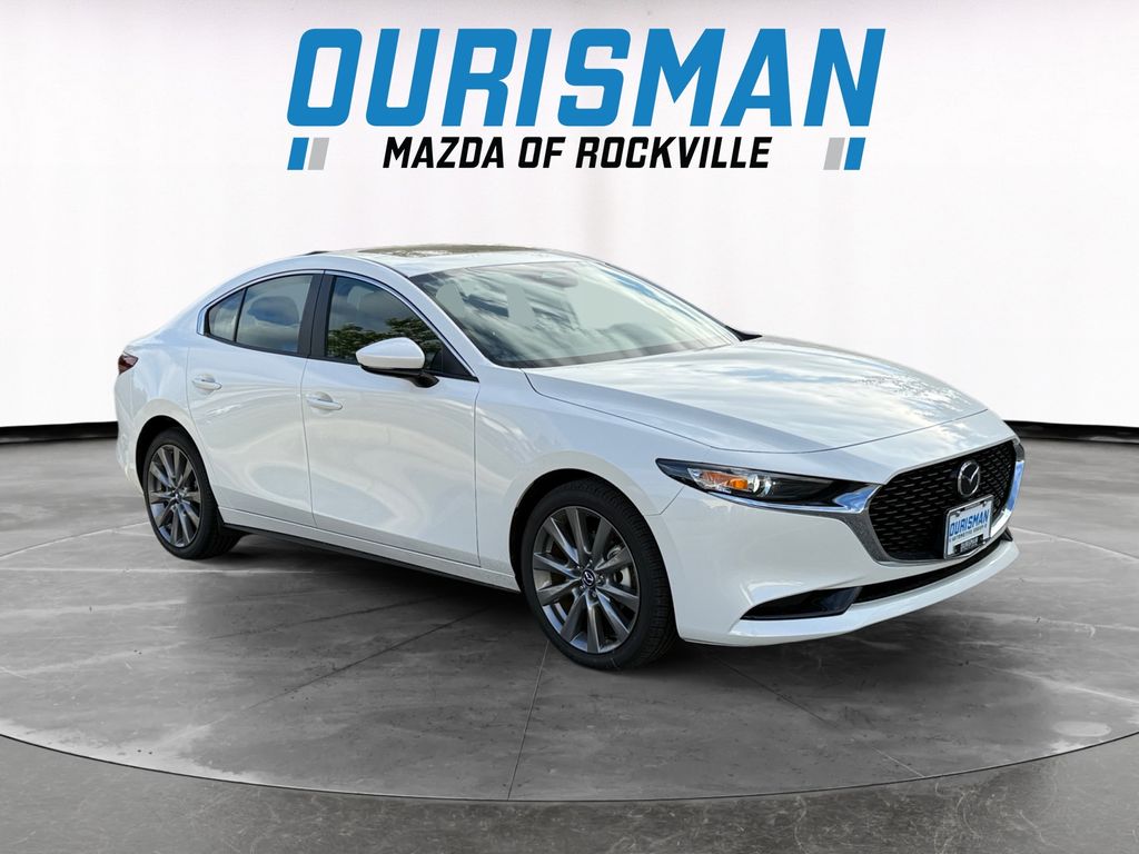This NEW 2025 Snowflake White Pearl Mazda Mazda3 2.5 S Preferred Package FWD is well equipped and includes these features and benefits:4-Wheel Disc Brakes, 6 Speakers, ABS brakes, Air Conditioning, Alloy wheels, AM/FM radio, AppLink/Apple CarPlay and Android Auto, Auto High-beam Headlights, Automatic temperature control, Brake assist, Bumpers: body-color, Cargo Tray, Compass, Delay-off headlights, Driver door bin, Driver vanity mirror, Dual front impact airbags, Dual front side impact airbags, Electronic Stability Control, Emergency communication system: Mazda Connected Services (1-year complimentary trial included), Exterior Parking Camera Rear, Front anti-roll bar, Front Bucket Seats, Front Center Armrest, Front dual zone A/C, Front reading lights, Front wheel independent suspension, Fully automatic headlights, Heated door mirrors, Heated Front Seats, Heated Front Sport Bucket Seats, High Wall All-Weather Floor Mats, Illuminated entry, Knee airbag, Leather Shift Knob, Leather steering wheel, Leatherette Seat Trim, Low tire pressure warning, MAZDA CONNECT Infotainment System, Memory seat, Occupant sensing airbag, Outside temperature display, Overhead airbag, Overhead console, Panic alarm, Passenger door bin, Passenger vanity mirror, Power door mirrors, Power driver seat, Power steering, Power Sun/Moonroof, Power windows, Radio data system, Radio: AM/FM Audio System, Rain sensing wipers, Rear seat center armrest, Rear side impact airbag, Rear window defroster, Remote keyless entry, Snowflake White Pearl Mica Paint Charge, Speed control, Speed-sensing steering, Split folding rear seat, Steering wheel mounted audio controls, Tachometer, Telescoping steering wheel, Tilt steering wheel, Traction control, Trip computer, Turn signal indicator mirrors, Variably intermittent wipers, Wheel Locks, and Wheels: 18" x 7J Aluminum Alloy. 2.5L I4 DOHC 16V LEV3-SULEV30 191hp 27/37 City/Highway MPG 6-Speed AutomaticOurisman Mazda in Rockville, MD has the DC Metro Area's best value for New MAZDA, and Pre Owned Used Cars, SUV's and Trucks! Call us at (301) 424-7800 or email us now and lock in the special "Promise Price" on your next vehicle! Ourisman MAZDAhas been a leading provider of great deals and phenomenal prices for customers in the DC Metro Area for over 100 years. This MAZDA Dealer specializes in new and pre-owned MAZDA vehicles, MAZDA Credit, MAZDA Service, and MAZDA Parts. Our knowledgeable MAZDA Sales and MAZDA Service staff has been trained and certified by MAZDA on providing amazing customer service. Since Ourisman MAZDAhas been selling and servicing Maryland, Virginia and DC for 100 years, our experience is second to none! Just check out our reviews online! Ourisman MAZDA proudly serves the Washington DC Metro Area, Fairfax, Alexandria, Arlington, Falls Church, Bethesda, Rockville, Gaithersburg, Chevy Chase, Laurel, Tysons Corner, Centreville, Manassas, Haymarket, Gainesville, Vienna, Suitland, LaPlata, Leonardtown, Prince Frederick, Lexington Park, Upper Marlboro. ALL of Charles County, Calvert County and St. Marys County. New Vehicle Prices do not include destination, tax, tags, title, registration, electronic filing fee, processing fee of $800 (Not required by law), and iKon (Optional $1,295.) Price includes: $2000 - Customer Cash. Exp. 12/01/2025