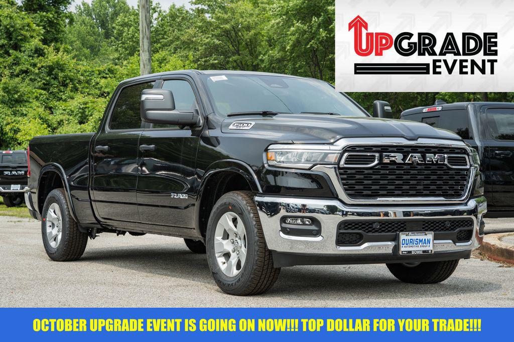 This NEW 2025 Diamond Black Crystal Pearlcoat Ram 1500 Big Horn/Lone Star 4WD is well equipped and includes these features and benefits:Big Horn Level 2 Equipment Group (115V Auxiliary Power Outlet, 115V Auxiliary Rear Power Outlet, 12"" Touchscreen Display, 2nd Row In Floor Storage Bins, 400W Inverter, 4G LTE Wi-Fi Hot Spot, 9 Amplified Speakers w/Subwoofer, Air Conditioning ATC w/Dual Zone Control, Apple CarPlay, Auto Power-Folding Mirrors, Auto-Dimming Exterior Driver Mirror, Auto-Dimming Rear-View Mirror, Black Exterior Mirrors, Black Premium Power Mirrors, Cluster 7.0"" TFT Color Display, Configurable Drive Mode, Connected Travel & Traffic Services, Connectivity - US/Canada, Convex Wide-Angle Exterior Mirror Insert, Exterior Mirrors Courtesy Lamps, Exterior Mirrors w/Heating Element, Exterior Mirrors w/Supplemental Signals, Glove Box Lamp, Google Android Auto, GPS Antenna Input, GPS Navigation, HD Radio, Heated Front Seats, Heated Steering Wheel, Integrated Voice Command w/Bluetooth, Leather Wrapped Steering Wheel, LED Dome Lamp w/On/Off Switch, LED Footwell Lighting, Media Hub w/2 Charge Only USBs, Overhead LED Lamps, Power 2-Way Driver Lumbar Adjust, Power Adjust 8-Way Driver Seat, Power Adjustable Pedals, Premium Overhead Console, Radio: Uconnect 5 Nav w/12.0"" Display, Rear Power Sliding Window, Rear Window Defroster, Remote Tailgate Release, Security Alarm, SiriusXM w/360L, Steering Wheel Mounted Audio Controls, Sun Visors w/Illuminated Vanity Mirrors, Universal Garage Door Opener, and USB Host Flip), Quick Order Package 21Z Big Horn, Towing Technology Group (Trailer Hitch Line-Up Assist), Trailer Tow Group (Accent Color Tailgate Handle, Black Trailer Tow Power Mirrors, Manual Folding Exterior Mirrors, Manual Telescoping Mirrors, Mirror Clearance/Running Lights, Power-Adjustable Convex Aux Mirrors, Trailer Brake Control, Trailer Reverse Steering Control, Trailer Tire Pressure Monitoring System, and Trailer Tow Mirrors), 12-Way/1-Way Trailer Connector, 3 Rear Seat Head Restraints, 4 Way Front Headrests, 4-Wheel Disc Brakes, 6 Speakers, ABS brakes, Air Conditioning, Alloy wheels, AM/FM radio, Anti-Spin Differential Rear Axle, Apple CarPlay/Android Auto, Auto High-beam Headlights, Brake assist, Bumpers: chrome, Cloth Bench Seat, Compass, Delay-off headlights, Driver door bin, Dual front impact airbags, Dual front side impact airbags, Electronic Stability Control, Engine Block Heater, Front anti-roll bar, Front Center Armrest w/Storage, Front fog lights, Front License Plate Bracket, Front reading lights, Front Seat Back Map Pockets, Front wheel independent suspension, Fully automatic headlights, Heated door mirrors, Illuminated entry, Low tire pressure warning, Manual Adjust 4-Way Front Passenger Seat, MOPAR Front & Rear Rubber Floor Mats, Occupant sensing airbag, Outside temperature display, Overhead airbag, Overhead console, Panic alarm, ParkView Rear Back-Up Camera, Passenger door bin, Passenger vanity mirror, Power door mirrors, Power steering, Power windows, Radio data system, Radio: Uconnect 5 W w/8.4"" Display, RAM Grille Badge - Chrome, Rear 60/40 Folding Seat, Rear anti-roll bar, Rear seat center armrest, Rear step bumper, Rear Underseat Compartment Storage, Remote keyless entry, Speed control, Split folding rear seat, Surround View Camera System, Tachometer, Telescoping steering wheel, Tilt steering wheel, Traction control, Trip computer, Variably intermittent wipers, Voltmeter, and Wheels: 18"" x 8"" Cast-Aluminum Painted. 8-Speed Automatic 3.0L I6Most prices include applicable manufacturer rebates and incentives (dealer retains incentives). Incentives and pricing may depend on manufacturer incentive program expiration dates which can varyNew Vehicle Prices do not include tax, tags, title, freight/destination, registration, electronic filing fee, processing fe Price includes: $2000 - 2025 National Overaged Select Inventory Bonus Cash. Exp. 11/03/2025 10% Msrp - 2025 National 10% Below MSRP . Exp. 11/03/2025