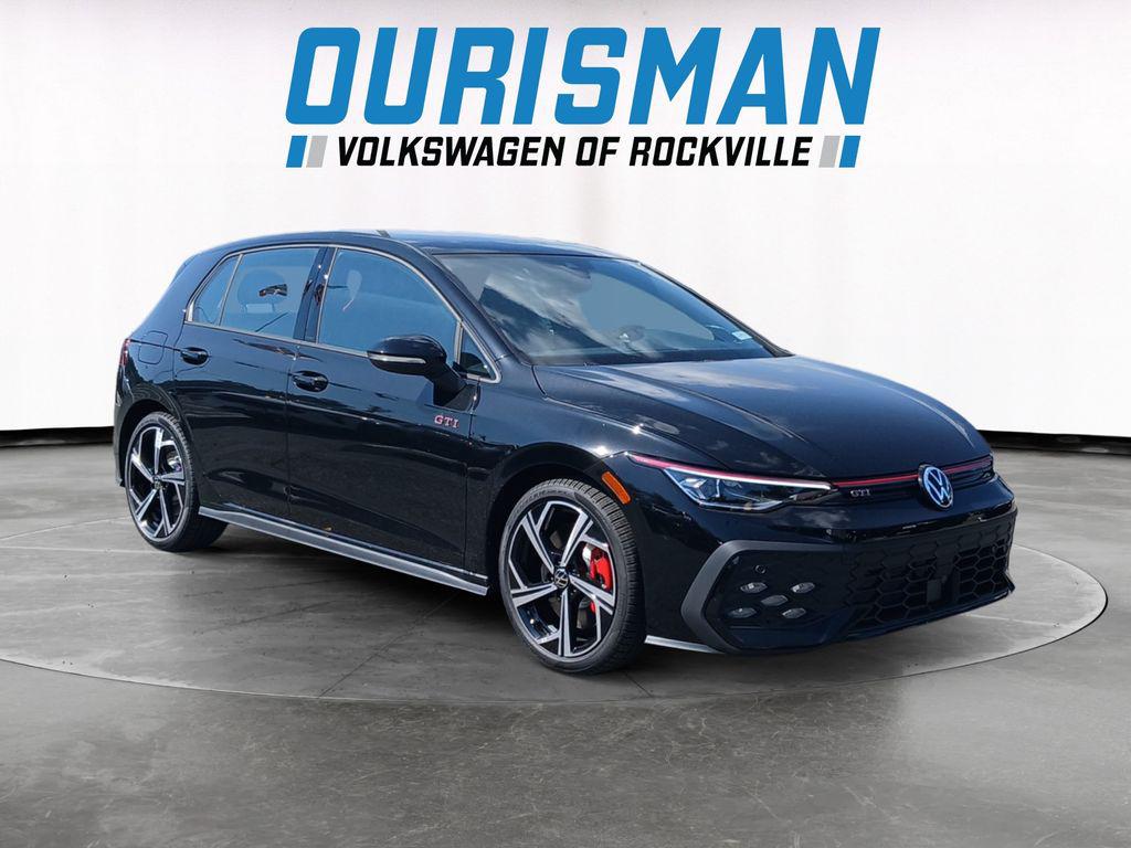 This NEW 2025 Black Volkswagen Golf GTI 2.0T SE FWD is well equipped and includes these features and benefits:SE Leather Seating Package (Actively Ventilated Front Seats, Padded Door Panels with Leatherette Inserts, Perforated Vienna Leather Seating Surfaces, and Power Adjustable Driver's Seat w/3 Position Memory), 4-Wheel Disc Brakes, 9 Speakers, ABS brakes, Air Conditioning, Alloy wheels, AM/FM radio: SiriusXM with 360L, ArtVelours Seating Surfaces, Auto High-beam Headlights, Auto-dimming Rear-View mirror, Automatic temperature control, Brake assist, Bumpers: body-color, Compass, Delay-off headlights, Driver door bin, Driver vanity mirror, Dual front impact airbags, Dual front side impact airbags, Electronic Stability Control, Emergency communication system: VW Car-Net Safe & Secure 5-year, Exterior Parking Camera Rear, Forward collision: FCW w/Autonomous Emergency Braking mitigation, Four wheel independent suspension, Front anti-roll bar, Front Bucket Seats, Front Center Armrest, Front fog lights, Front reading lights, Fully automatic headlights, harman/kardon® Speakers, Heated door mirrors, Heated Front Seats, Heated Front Top Sport Seats, Heated steering wheel, Illuminated entry, Leather steering wheel, Low tire pressure warning, Navigation System, Occupant sensing airbag, Outside temperature display, Overhead airbag, Overhead console, Panic alarm, Passenger door bin, Passenger vanity mirror, Power door mirrors, Power driver seat, Power moonroof: Panoramic, Power passenger seat, Power steering, Power windows, Radio data system, Radio: MIB3 Discover Pro AM/FM/HD With12.9"" Touchscreen Navigation, Rain sensing wipers, Rear anti-roll bar, Rear reading lights, Rear seat center armrest, Rear window defroster, Rear window wiper, Remote keyless entry, Rubber Monster Mats (set of 4), Security system, Speed control, Speed-sensing steering, Speed-Sensitive Wipers, Split folding rear seat, Spoiler, Sport steering wheel, Steering wheel mounted audio controls, Tachometer, Telescoping steering wheel, Tilt steering wheel, Traction control, Trip computer, Turn signal indicator mirrors, Variably intermittent wipers, and Wheels: 18"" 2-Tone Diamond-Turned Alloy. 2.0L TSI DOHC 24/32 City/Highway MPG 7-Speed DSG Automatic with TiptronicOurisman VW in Rockville, MD has the DC Metro Area's best value for New Volkswagen, and Pre Owned Used Cars, SUV's and Trucks! Call us at (301) 424-7800 or email us now and lock in the special ""Promise Price"" on your next vehicle! Ourisman VW has been a leading provider of great deals and phenomenal prices for customers in the DC Metro Area for over 100 years. This VW Dealer specializes in new and pre-owned Volkswagen vehicles, Volkswagen Credit, Volkswagen Service, and Volkswagen Parts. Our knowledgeable Volkswagen Sales and Volkswagen Service staff has been trained and certified by Volkswagen on providing amazing customer service. Since Ourisman Volkswagen has been selling and servicing Maryland, Virginia and DC for 100 years, our experience is second to none! Just check out our reviews online! Ourisman VW proudly serves the Washington DC Metro Area, Fairfax, Alexandria, Arlington, Falls Church, Bethesda, Rockville, Gaithersburg, Chevy Chase, Laurel, Tysons Corner, Centreville, Manassas, Haymarket, Gainesville, Vienna, Suitland, LaPlata, Leonardtown, Prince Frederick, Lexington Park, Upper Marlboro. ALL of Charles County, Calvert County and St. Marys County. New Vehicle Prices do not include destination, tax, tags, title, registration, electronic filing fee, processing fee of $800 (Not required by law), and iKon (Optional $1,295.) Price includes: $1000 - Customer Bonus. Exp. 03/02/2026