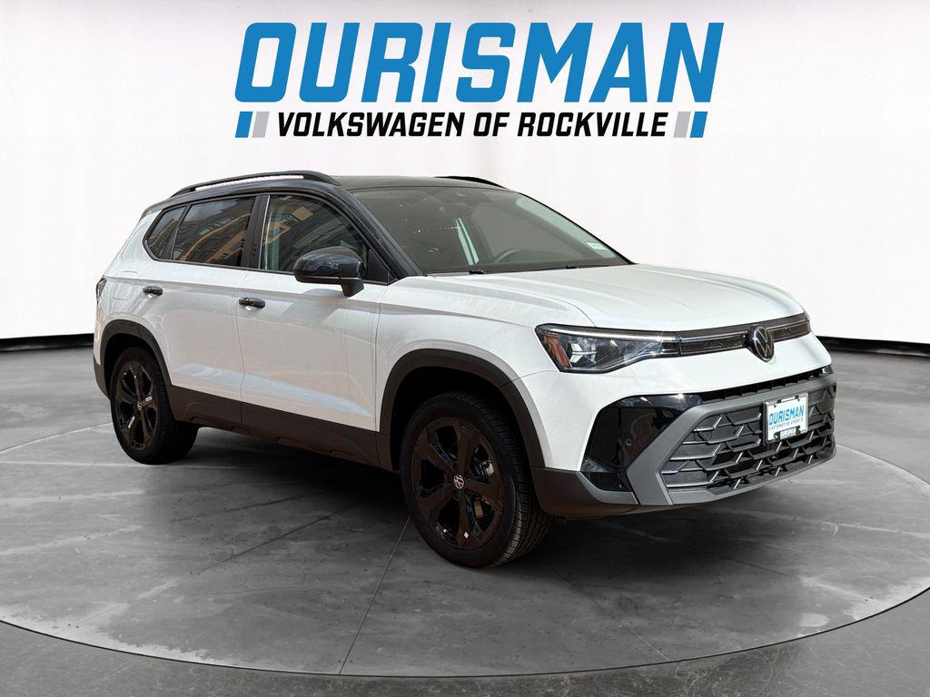 This NEW 2025 White Volkswagen Taos 1.5T SE Black AWD is well equipped and includes these features and benefits:4-Wheel Disc Brakes, 6 Speakers, ABS brakes, Active Blind Spot Monitor, Air Conditioning, Alloy wheels, AM/FM radio: SiriusXM with 360L, Auto High-beam Headlights, Automatic temperature control, Brake assist, Bumpers: body-color, CloudTex & Cloth Seating Surfaces, Compass, Delay-off headlights, Driver door bin, Driver vanity mirror, Dual front impact airbags, Dual front side impact airbags, Electronic Stability Control, Emergency communication system: VW Car-Net Safe & Secure 5-year, Exterior Parking Camera Rear, Four wheel independent suspension, Front anti-roll bar, Front Bucket Seats, Front Center Armrest, Front dual zone A/C, Front reading lights, Front Strut Rear Multi-Link Suspension, Fully automatic headlights, Heated door mirrors, Heated Front Bucket Seats, Heated Front Seats, Heated steering wheel, Illuminated entry, Leather Shift Knob, Low tire pressure warning, Occupant sensing airbag, Outside temperature display, Overhead airbag, Overhead console, Panic alarm, Passenger door bin, Passenger vanity mirror, Power door mirrors, Power driver seat, Power steering, Power Sun/Moonroof, Power windows, Radio data system, Radio: MIB3 Composition Media AM/FM/HD, Rain sensing wipers, Rear anti-roll bar, Rear seat center armrest, Rear window defroster, Rear window wiper, Remote keyless entry, Rubber Mats Kit, Security system, Speed control, Speed-sensing steering, Split folding rear seat, Spoiler, Steering wheel mounted audio controls, Tachometer, Telescoping steering wheel, Tilt steering wheel, Traction control, Trip computer, Variably intermittent wipers, and Wheels: 19"" Black Painted Alloy. 1.5L I4 Turbocharged DOHC 16V LEV3-SULEV30 174hp 25/33 City/Highway MPG 8-Speed Automatic with TiptronicOurisman VW in Rockville, MD has the DC Metro Area's best value for New Volkswagen, and Pre Owned Used Cars, SUV's and Trucks! Call us at (301) 424-7800 or email us now and lock in the special ""Promise Price"" on your next vehicle! Ourisman VW has been a leading provider of great deals and phenomenal prices for customers in the DC Metro Area for over 100 years. This VW Dealer specializes in new and pre-owned Volkswagen vehicles, Volkswagen Credit, Volkswagen Service, and Volkswagen Parts. Our knowledgeable Volkswagen Sales and Volkswagen Service staff has been trained and certified by Volkswagen on providing amazing customer service. Since Ourisman Volkswagen has been selling and servicing Maryland, Virginia and DC for 100 years, our experience is second to none! Just check out our reviews online! Ourisman VW proudly serves the Washington DC Metro Area, Fairfax, Alexandria, Arlington, Falls Church, Bethesda, Rockville, Gaithersburg, Chevy Chase, Laurel, Tysons Corner, Centreville, Manassas, Haymarket, Gainesville, Vienna, Suitland, LaPlata, Leonardtown, Prince Frederick, Lexington Park, Upper Marlboro. ALL of Charles County, Calvert County and St. Marys County. New Vehicle Prices do not include destination, tax, tags, title, registration, electronic filing fee, processing fee of $800 (Not required by law), and iKon (Optional $1,295.) Price includes: $2500 - Retail Customer Bonus. Exp. 01/05/2026
