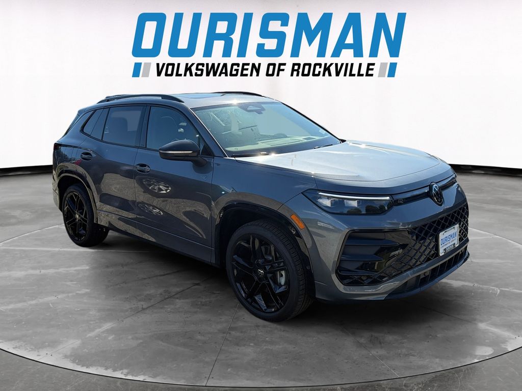 This NEW 2025 Platinum Volkswagen Tiguan 2.0T SE R-Line Black AWD is well equipped and includes these features and benefits:AWD, 4-Wheel Disc Brakes, 4-Wheel Independent Suspension, 7 Speakers, ABS brakes, Air Conditioning, Alloy wheels, AM/FM radio: SiriusXM with 360L, Auto High-beam Headlights, Auto-dimming Rear-View mirror, Automatic temperature control, Brake assist, Bumperdillo Rear Bumper Protection Plate in Black, Bumpers: body-color, Carpeted Mats Kit (Set of 4), Compass, Delay-off headlights, Driver door bin, Driver vanity mirror, Dual front impact airbags, Dual front side impact airbags, Electronic Stability Control, Emergency communication system: VW Car-Net Safe & Secure 5-year, Exterior Parking Camera Rear, Four wheel independent suspension, Front anti-roll bar, Front Bucket Seats, Front Center Armrest, Front dual zone A/C, Front reading lights, Fully automatic headlights, Heads-Up Display, Heated door mirrors, Heated Front Seats, Heated Front Seats, Illuminated entry, Knee airbag, Leather Shift Knob, Leather steering wheel, Low tire pressure warning, Occupant sensing airbag, Outside temperature display, Overhead airbag, Overhead console, Panic alarm, Passenger door bin, Passenger vanity mirror, Perforated V-Tex Leatherette Seating Surfaces, Power door mirrors, Power driver seat, Power Liftgate, Power steering, Power Sun/Moonroof, Power windows, Radio data system, Radio: MIB4 Composition Media Touchscreen AM/FM, Rain sensing wipers, Rear anti-roll bar, Rear reading lights, Rear seat center armrest, Rear side impact airbag, Rear window defroster, Rear window wiper, Remote keyless entry, Security system, Speed control, Speed-sensing steering, Split folding rear seat, Spoiler, Sport steering wheel, Steering wheel mounted audio controls, Tachometer, Telescoping steering wheel, Tilt steering wheel, Traction control, Trip computer, Turn signal indicator mirrors, Variably intermittent wipers, and Wheels: 20" Black Painted Alloy. 2.0L TSI DOHC 22/30 City/Highway MPG 8-Speed Automatic AWD.Ourisman VW in Rockville, MD has the DC Metro Area's best value for New Volkswagen, and Pre Owned Used Cars, SUV's and Trucks! Call us at (301) 424-7800 or email us now and lock in the special "Promise Price" on your next vehicle! Ourisman VW has been a leading provider of great deals and phenomenal prices for customers in the DC Metro Area for over 100 years. This VW Dealer specializes in new and pre-owned Volkswagen vehicles, Volkswagen Credit, Volkswagen Service, and Volkswagen Parts. Our knowledgeable Volkswagen Sales and Volkswagen Service staff has been trained and certified by Volkswagen on providing amazing customer service. Since Ourisman Volkswagen has been selling and servicing Maryland, Virginia and DC for 100 years, our experience is second to none! Just check out our reviews online! Ourisman VW proudly serves the Washington DC Metro Area, Fairfax, Alexandria, Arlington, Falls Church, Bethesda, Rockville, Gaithersburg, Chevy Chase, Laurel, Tysons Corner, Centreville, Manassas, Haymarket, Gainesville, Vienna, Suitland, LaPlata, Leonardtown, Prince Frederick, Lexington Park, Upper Marlboro. ALL of Charles County, Calvert County and St. Marys County. New Vehicle Prices do not include destination, tax, tags, title, registration, electronic filing fee, processing fee of $800 (Not required by law), and iKon (Optional $1,295.)