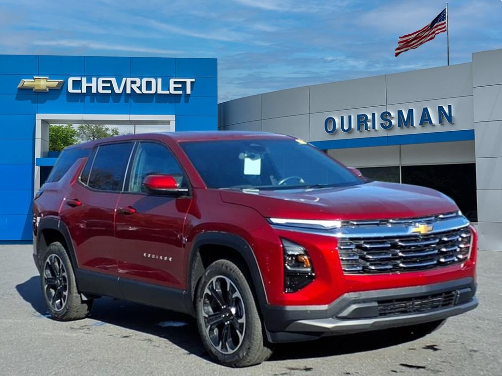 This NEW 2026 Radiant Red Chevrolet Equinox LT AWD is well equipped and includes these features and benefits:AWD, 3.47 Final Drive Axle Ratio, 4-Wheel Disc Brakes, 6 Speakers, ABS brakes, Air Conditioning, Alloy wheels, AM/FM radio: SiriusXM, Auto High-beam Headlights, Brake assist, Bumpers: body-color, Cargo Mat, Cloth Seat Trim, Compass, Custom Molded Front & Rear Splash Guards (LPO), Delay-off headlights, Driver 6-Way Manual Seat Adjuster, Driver door bin, Driver vanity mirror, Dual front impact airbags, Dual front side impact airbags, Electronic Stability Control, Emergency communication system: OnStar and Chevrolet connected services capable, Four wheel independent suspension, Front anti-roll bar, Front Bucket Seats, Front Center Armrest, Front Passenger 4-Way Manual Seat Adjuster, Front reading lights, Fully automatic headlights, Heated door mirrors, Heated Driver & Front Passenger Seats, Heated front seats, Heated steering wheel, Illuminated entry, Low tire pressure warning, Navigation System, Occupant sensing airbag, Outside temperature display, Overhead airbag, Overhead console, Panic alarm, Passenger door bin, Passenger vanity mirror, Power door mirrors, Power steering, Power windows, Premium audio system: Chevrolet Infotainment 3, Radio data system, Radio: 11.3" Diagonal Advanced Color LCD Display, Rear anti-roll bar, Rear reading lights, Rear seat center armrest, Rear window defroster, Rear window wiper, Remote keyless entry, Security system, SiriusXM w/360L Trial Subscription, Speed control, Speed-sensing steering, Split folding rear seat, Spoiler, Steering wheel mounted audio controls, Tachometer, Telescoping steering wheel, Tilt steering wheel, Traction control, Trip computer, Variably intermittent wipers, Wheels: 17" Grazen Metallic Machined-Face Aluminum, and Wheels: 19" Black Machined-Face Aluminum. AWD.1.5L DOHC 8-Speed AutomaticOurisman discount prices are valid based on manufacturer incentive program time periods. We make every effort to provide accurate information, but please verify options and price before purchasing. All vehicles are subject to prior sale. All prices are special internet prices only. All financing is subject to approved credit. All new vehicle Prices do not include tax, tags, title, freight/destination, registration, electronic filing fee, processing fee of $800 (Not required by law), and iKon (Optional $1,295.)