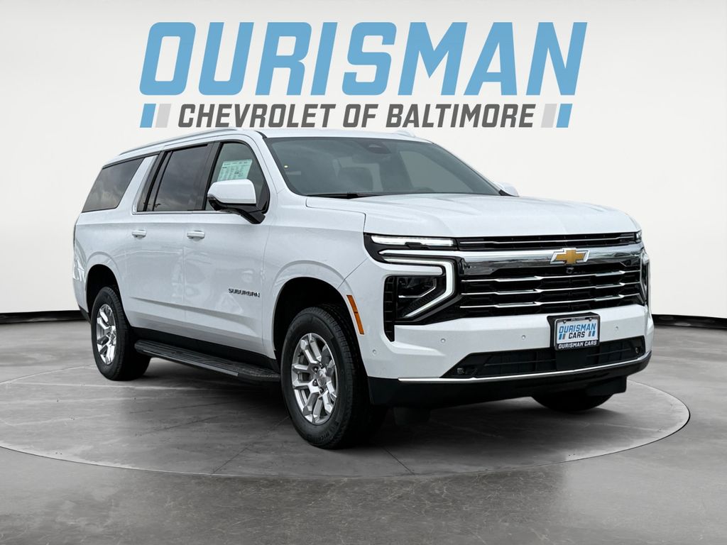 This NEW 2026 Summit White Chevrolet Suburban LT 4WD is well equipped and includes these features and benefits:2-Way Driver Power Lumbar Seat Adjuster, 2-Way Front Passenger Power Lumbar Seat Adjuster, 3.23 Rear Axle Ratio, 3rd row seats: split-bench, 4-Wheel Disc Brakes, 6-Speaker Audio System, 8-Way Power Driver Seat Adjuster, 8-Way Power Front Passenger Seat Adjuster, 9 Speakers, ABS brakes, Air Conditioning, Alloy wheels, AM/FM radio: SiriusXM with 360L, Apple CarPlay/Android Auto, Auto High-beam Headlights, Automatic temperature control, Brake assist, Bumpers: body-color, Compass, Delay-off headlights, Driver door bin, Driver vanity mirror, Dual front impact airbags, Dual front side impact airbags, Electronic Stability Control, Emergency communication system: OnStar Services capable, Exterior Parking Camera Rear, Four wheel independent suspension, Front anti-roll bar, Front Bucket Seats, Front Center Armrest, Front dual zone A/C, Front reading lights, Fully automatic headlights, Heated door mirrors, Heated Driver and Front Passenger Seats, Heated front seats, Illuminated entry, Interior Camera, Leather-Appointed Seating, Low tire pressure warning, Memory seat, Memory Settings For Driver, Navigation system: Google built-in compatibility (select service plan required, terms and limitations apply), Occupant sensing airbag, Outside temperature display, Overhead airbag, Overhead console, Panic alarm, Passenger door bin, Passenger vanity mirror, Power door mirrors, Power driver seat, Power Liftgate, Power passenger seat, Power steering, Power windows, Premium Smooth Ride Suspension, Radio data system, Radio: 17.7" Diagonal Advanced Color LCD Display, Rain sensing wipers, Rear air conditioning, Rear anti-roll bar, Rear Power Liftgate, Rear reading lights, Rear seat center armrest, Rear window defroster, Rear window wiper, Remote keyless entry, Security system, SiriusXM with 360L Trial Subscription, Speed control, Speed-sensing steering, Split folding rear seat, Spoiler, Steering wheel mounted audio controls, Tachometer, Telescoping steering wheel, Tilt steering wheel, Traction control, Trip computer, Variably intermittent wipers, Voltmeter, Wheels: 18" x 8.5" Bright Silver Painted Aluminum, Wireless Apple CarPlay/Wireless Android Auto, and Wireless Phone Charging.Prices do not include tax, tags, title, freight/destination, registration, electronic filing fee, processing fee of $800 (Not required by law), Ceramic Coating $1,195 (Optional), Interior Protection $795 (Optional), Ourisman Shield $895 (Optional), and iKON $995 (Optional)