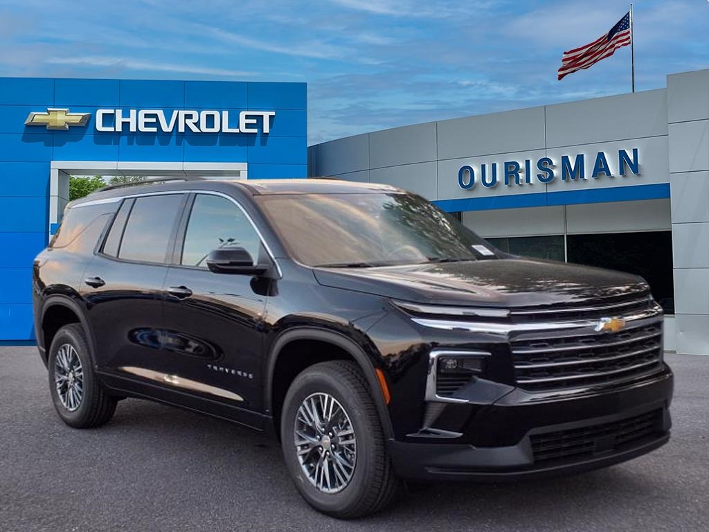 This NEW 2026 Black Metallic Chevrolet Traverse LT AWD is well equipped and includes these features and benefits:Preferred Equipment Group 2LT, AWD, 3rd row seats: split-bench, 4-Way Manual Front Passenger Seat Adjuster, 4-Wheel Disc Brakes, 6 Speakers, 6-Speaker Audio System Feature, 8-Way Power Driver Seat Adjuster, ABS brakes, Air Conditioning, Alloy wheels, AM/FM radio: SiriusXM with 360L, Apple CarPlay/Android Auto, Auto High-beam Headlights, Automatic temperature control, Brake assist, Bumpers: body-color, Cargo Tray w/Divider (LPO), Child-Seat-Sensing Airbag, Compass, Delay-off headlights, Driver door bin, Driver vanity mirror, Dual front impact airbags, Dual front side impact airbags, Electronic Stability Control, Emergency communication system: OnStar, Four wheel independent suspension, Front anti-roll bar, Front Bucket Seats, Front Center Armrest, Front dual zone A/C, Front reading lights, Fully automatic headlights, Heated door mirrors, Heated Driver & Front Passenger Seats, Heated front seats, Heated steering wheel, Illuminated entry, Low tire pressure warning, Navigation System, Occupant sensing airbag, Outside temperature display, Overhead airbag, Overhead console, Panic alarm, Passenger door bin, Passenger vanity mirror, Power door mirrors, Power driver seat, Power Liftgate, Power steering, Power windows, Premium Cloth Seat Trim, Radio data system, Radio: Audio System w/17.7" Diagonal Display, Rear air conditioning, Rear anti-roll bar, Rear reading lights, Rear window defroster, Rear window wiper, Remote keyless entry, Security system, SiriusXM w/360L Trial Subscription, Speed control, Speed-sensing steering, Spoiler, Steering wheel mounted audio controls, Tachometer, Telescoping steering wheel, Tilt steering wheel, Traction control, Trip computer, Turn signal indicator mirrors, Variably intermittent wipers, Vertical Cargo Net (LPO), Voltmeter, and Wheels: 18" Grazen Metallic Machined-Face Aluminum. AWD, Preferred Equipment Group 2LT.2.5L DOHC 8-Speed AutomaticOurisman discount prices are valid based on manufacturer incentive program time periods. We make every effort to provide accurate information, but please verify options and price before purchasing. All vehicles are subject to prior sale. All prices are special internet prices only. All financing is subject to approved credit. All new vehicle Prices do not include tax, tags, title, freight/destination, registration, electronic filing fee, processing fee of $800 (Not required by law), and iKon (Optional $1,295.)