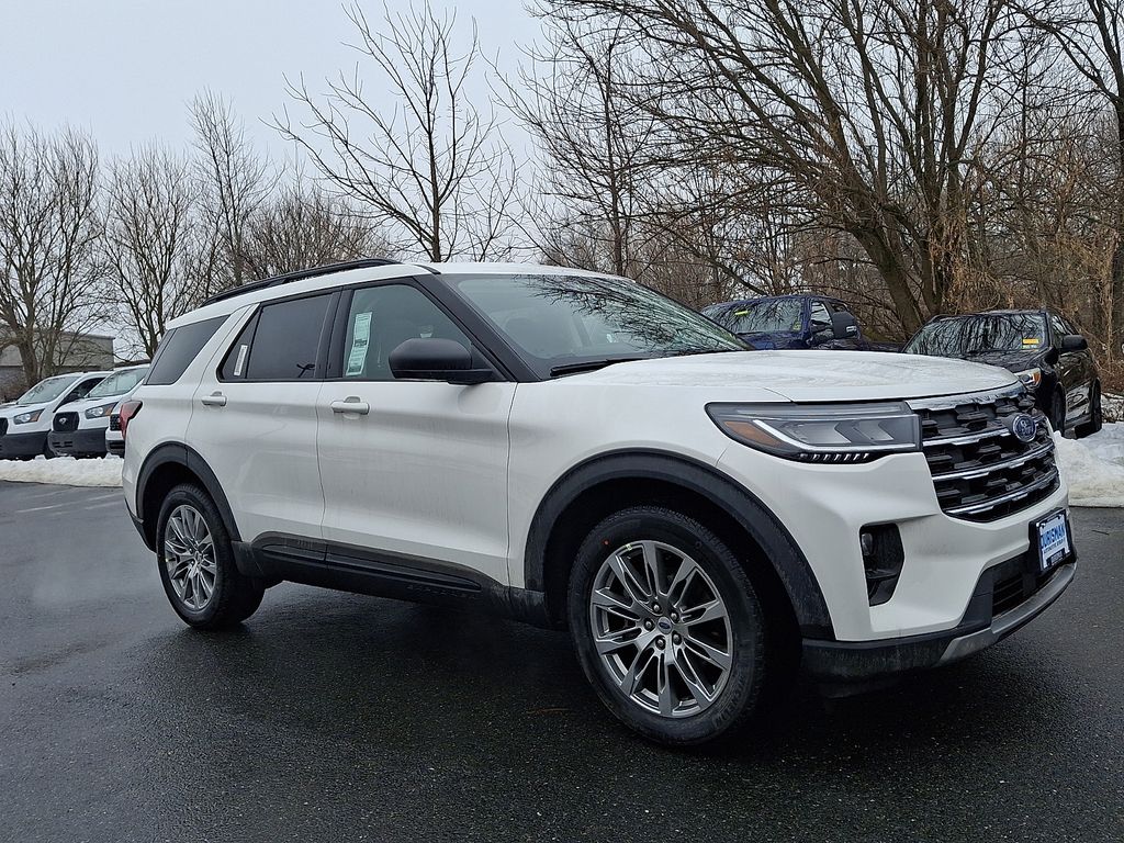 This NEW 2026 Star White Metallic Tri-Coat Ford Explorer Active 4WD is well equipped and includes these features and benefits:4WD, 3rd Row All-Weather Floor Liners with 2nd Row Captain's Charis, 3rd row seats: bench, 4-Wheel Disc Brakes, 6 Speakers, ABS brakes, Air Conditioning, Alloy wheels, AM/FM radio: SiriusXM with 360L, AM/FM Stereo, Apple CarPlay/Android Auto, Auto High-beam Headlights, Automatic temperature control, Brake assist, Bumpers: body-color, Compass, Delay-off headlights, Driver door bin, Driver vanity mirror, Dual front impact airbags, Dual front side impact airbags, Electronic Stability Control, Emergency communication system: 911 Assist, Exterior Parking Camera Rear, Four wheel independent suspension, Front and Second Rows Floor Liners Without Floor Mats, Front anti-roll bar, Front Bucket Seats, Front Center Armrest, Front dual zone A/C, Front License Plate Bracket, Front reading lights, Fully automatic headlights, Heated door mirrors, Illuminated entry, Knee airbag, Low tire pressure warning, Navigation System, Occupant sensing airbag, Outside temperature display, Overhead airbag, Overhead console, Panic alarm, Passenger door bin, Passenger vanity mirror, Power door mirrors, Power driver seat, Power steering, Power windows, Rear air conditioning, Rear anti-roll bar, Rear reading lights, Rear window defroster, Rear window wiper, Remote keyless entry, Security system, SiriusXM with 360L (3-Year Plan), Speed control, Speed-sensing steering, Speed-Sensitive Wipers, Split folding rear seat, Spoiler, Steering wheel mounted audio controls, Tachometer, Telescoping steering wheel, Tilt steering wheel, Traction control, Trip computer, Variably intermittent wipers, and Wheels: 18" Sparkle Silver-Painted Aluminum. **MARYLAND STATE INSPECTED**, 4WD. 20/27 City/Highway MPG 2.3L EcoBoost I-4 10-Speed AutomaticPrice includes dealer discount and all applicable rebates. Some rebates may require financing and approval or other requirements. Contact dealer for details. Price does not include tax, tags, or dealer process fee of $800 (not required by law) Price includes: $3500 - Retail Customer Cash. Exp. 03/31/2026