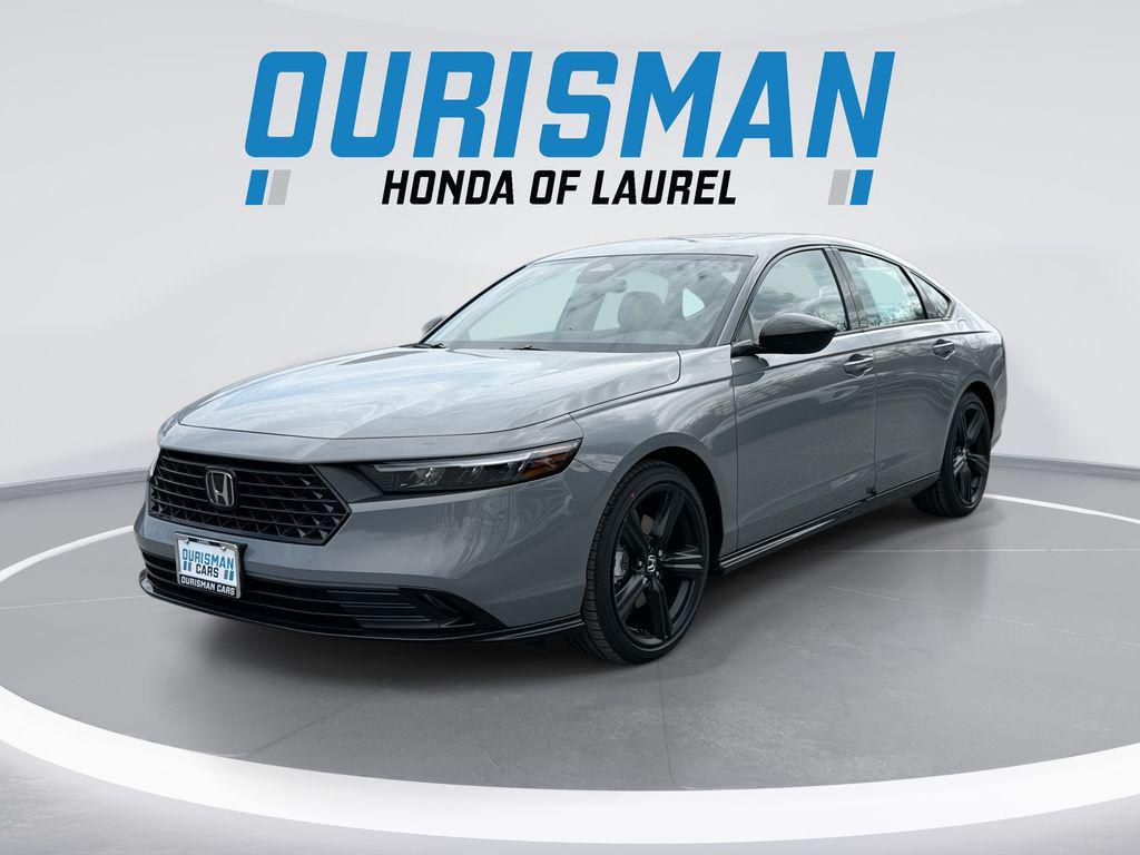 Ourisman Honda of Laurel welcomes you to come test drive this NEW 2026 Urban Gray Pearl Honda Accord Hybrid Sport-L FWD is well equipped and includes these features and benefits:2.0L I4 DOHC 16V, 4-Wheel Disc Brakes, 8 Speakers, ABS brakes, Adaptive Cruise Control: Adaptive Cruise Control (ACC) with Low-Speed Follow, Air Conditioning, Alloy wheels, AM/FM radio, Apple CarPlay/Android Auto, Auto High-beam Headlights, Automatic temperature control, Blind Spot Information (BSI) System warning, Brake assist, Bumpers: body-color, Compass, Delay-off headlights, Driver door bin, Driver vanity mirror, Dual front impact airbags, Dual front side impact airbags, Electronic Stability Control, Emergency communication system: HondaLink, Exterior Parking Camera Rear, Four wheel independent suspension, Front anti-roll bar, Front Bucket Seats, Front Center Armrest, Front dual zone A/C, Front reading lights, Fully automatic headlights, Heated Front Bucket Seats, Heated front seats, Illuminated entry, Knee airbag, Lane departure: Lane Keeping Assist System (LKAS) active, Leather Shift Knob, Leather steering wheel, Leather-Trimmed Seat Trim, Low tire pressure warning, Memory seat, Occupant sensing airbag, Outside temperature display, Overhead airbag, Overhead console, Panic alarm, Passenger door bin, Passenger vanity mirror, Power door mirrors, Power driver seat, Power moonroof, Power passenger seat, Power steering, Power windows, Radio data system, Radio: 180-Watt Audio System, Rear anti-roll bar, Rear reading lights, Rear seat center armrest, Rear side impact airbag, Rear window defroster, Remote keyless entry, Security system, Speed control, Speed-sensing steering, Speed-Sensitive Wipers, Split folding rear seat, Spoiler, Steering wheel mounted audio controls, Telescoping steering wheel, Tilt steering wheel, Traction control, Trip computer, Variably intermittent wipers, and Wheels: 19"" x 8.5J Matte Berlina Black. 46/41 City/Highway MPG 2.0L I4 DOHC 16V.All dealer website prices exclude your state's tax and tag fees. As we work with our 3rd party vehicle listing websites (Autotrader, cars.com, cargurus, etc.) on pricing transparency, the price listed on those sites excludes tax, tags and $800 Dealer Processing Charge (not required by law).