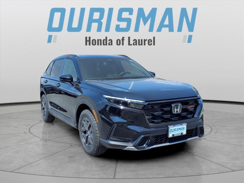 Ourisman Honda of Laurel welcomes you to come test drive this NEW 2026 Crystal Black Pearl Honda CR-V Hybrid Trailsport AWD is well equipped and includes these features and benefits:2.0L I4 DOHC 16V, 4-Wheel Disc Brakes, 8 Speakers, ABS brakes, Adaptive Cruise Control: Adaptive Cruise Control (ACC) with Low-Speed Follow, Air Conditioning, Alloy wheels, Apple CarPlay/Android Auto, Auto High-beam Headlights, Automatic temperature control, Blind Spot Information (BSI) System warning, Brake assist, Bumpers: body-color, Cloth Seat Trim, Compass, Delay-off headlights, Driver door bin, Driver vanity mirror, Dual front impact airbags, Dual front side impact airbags, Electronic Stability Control, Exterior Parking Camera Rear, Four wheel independent suspension, Front anti-roll bar, Front Bucket Seats, Front Center Armrest, Front dual zone A/C, Front reading lights, Fully automatic headlights, Heated door mirrors, Heated Front Bucket Seats, Heated front seats, Heated steering wheel, Illuminated entry, Knee airbag, Leather Shift Knob, Leather steering wheel, Low tire pressure warning, Occupant sensing airbag, Outside temperature display, Overhead airbag, Overhead console, Panic alarm, Passenger door bin, Passenger vanity mirror, Power door mirrors, Power driver seat, Power moonroof, Power steering, Power windows, Radio data system, Radio: 320-Watt AM/FM Audio System, Rear anti-roll bar, Rear reading lights, Rear seat center armrest, Rear side impact airbag, Rear window defroster, Rear window wiper, Remote keyless entry, Security system, Speed control, Speed-sensing steering, Speed-Sensitive Wipers, Split folding rear seat, Spoiler, Steering wheel mounted audio controls, Telescoping steering wheel, Tilt steering wheel, Traction control, Trip computer, Turn signal indicator mirrors, Variably intermittent wipers, and Wheels: 18"" Shark Gray. 38/33 City/Highway MPG 2.0L I4 DOHC 16V.Prices do not include tax, tags, title, registration, electronic filing fee, processing fee of $800 (Not required by law), iKon (Optional $1,295.), And any reconditioning fees.