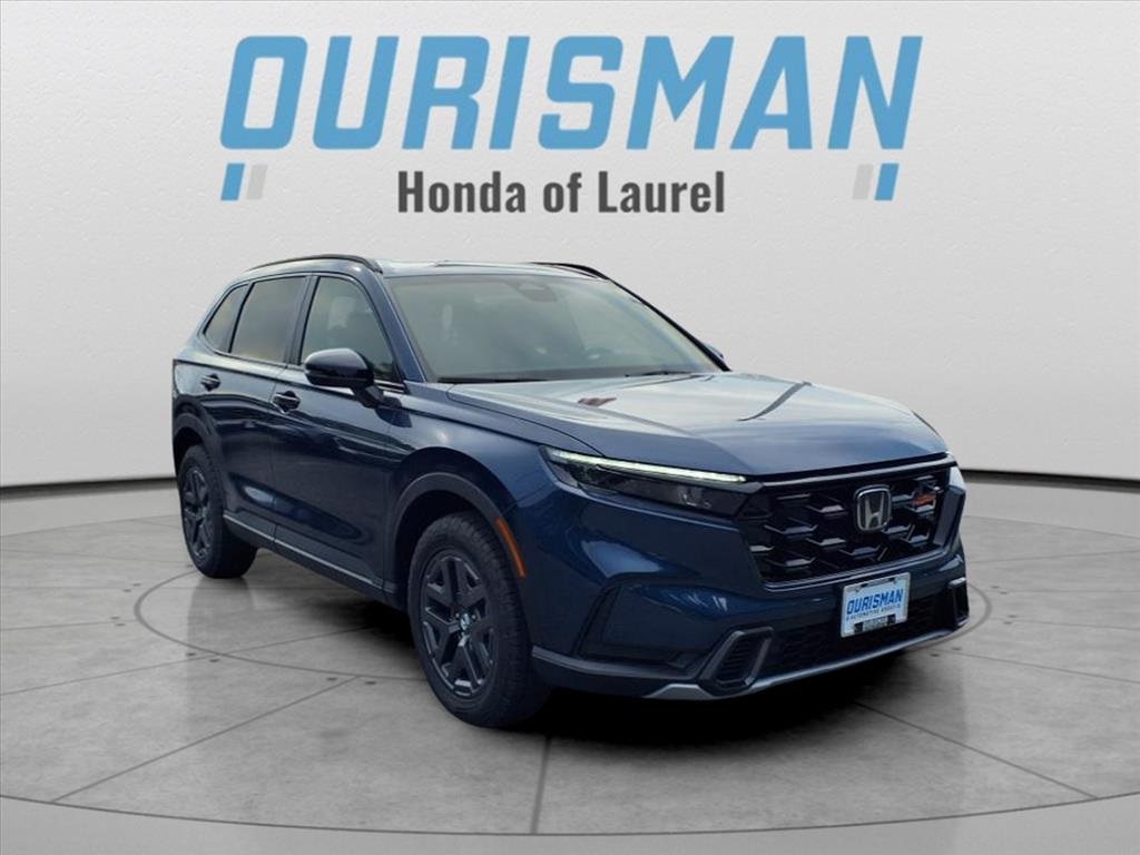 Ourisman Honda of Laurel welcomes you to come test drive this NEW 2026 Canyon River Blue Metallic Honda CR-V Hybrid Trailsport AWD is well equipped and includes these features and benefits:2.0L I4 DOHC 16V, 4-Wheel Disc Brakes, 8 Speakers, ABS brakes, Adaptive Cruise Control: Adaptive Cruise Control (ACC) with Low-Speed Follow, Air Conditioning, Alloy wheels, Apple CarPlay/Android Auto, Auto High-beam Headlights, Automatic temperature control, Blind Spot Information (BSI) System warning, Brake assist, Bumpers: body-color, Cloth Seat Trim, Compass, Delay-off headlights, Driver door bin, Driver vanity mirror, Dual front impact airbags, Dual front side impact airbags, Electronic Stability Control, Exterior Parking Camera Rear, Four wheel independent suspension, Front anti-roll bar, Front Bucket Seats, Front Center Armrest, Front dual zone A/C, Front reading lights, Fully automatic headlights, Heated door mirrors, Heated Front Bucket Seats, Heated front seats, Heated steering wheel, Illuminated entry, Knee airbag, Leather Shift Knob, Leather steering wheel, Low tire pressure warning, Occupant sensing airbag, Outside temperature display, Overhead airbag, Overhead console, Panic alarm, Passenger door bin, Passenger vanity mirror, Power door mirrors, Power driver seat, Power moonroof, Power steering, Power windows, Radio data system, Radio: 320-Watt AM/FM Audio System, Rear anti-roll bar, Rear reading lights, Rear seat center armrest, Rear side impact airbag, Rear window defroster, Rear window wiper, Remote keyless entry, Security system, Speed control, Speed-sensing steering, Speed-Sensitive Wipers, Split folding rear seat, Spoiler, Steering wheel mounted audio controls, Telescoping steering wheel, Tilt steering wheel, Traction control, Trip computer, Turn signal indicator mirrors, Variably intermittent wipers, and Wheels: 18"" Shark Gray. 38/33 City/Highway MPG 2.0L I4 DOHC 16V.Prices do not include tax, tags, title, registration, electronic filing fee, processing fee of $800 (Not required by law), iKon (Optional $1,295.), And any reconditioning fees.