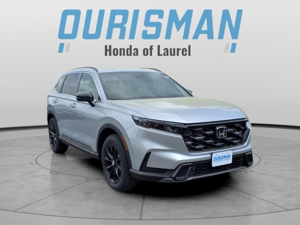 Ourisman Honda of Laurel welcomes you to come test drive this NEW 2026 Solar Silver Metallic Honda CR-V Hybrid Sport-L AWD is well equipped and includes these features and benefits:2.0L I4 DOHC 16V, 4-Wheel Disc Brakes, 8 Speakers, ABS brakes, Adaptive Cruise Control: Adaptive Cruise Control (ACC) with Low-Speed Follow, Air Conditioning, Alloy wheels, Apple CarPlay/Android Auto, Auto High-beam Headlights, Auto-dimming Rear-View mirror, Automatic temperature control, Blind Spot Information (BSI) System warning, Brake assist, Bumpers: body-color, Compass, Delay-off headlights, Driver door bin, Driver vanity mirror, Dual front impact airbags, Dual front side impact airbags, Electronic Stability Control, Exterior Parking Camera Rear, Four wheel independent suspension, Front anti-roll bar, Front Bucket Seats, Front Center Armrest, Front dual zone A/C, Front reading lights, Fully automatic headlights, Heated door mirrors, Heated Front Bucket Seats, Heated front seats, Illuminated entry, Knee airbag, Leather Seat Trim, Leather Shift Knob, Leather steering wheel, Low tire pressure warning, Memory seat, Occupant sensing airbag, Outside temperature display, Overhead airbag, Overhead console, Panic alarm, Passenger door bin, Passenger vanity mirror, Power door mirrors, Power driver seat, Power Liftgate, Power moonroof, Power passenger seat, Power steering, Power windows, Radio data system, Radio: 320-Watt AM/FM Audio System, Rear anti-roll bar, Rear reading lights, Rear seat center armrest, Rear side impact airbag, Rear window defroster, Rear window wiper, Remote keyless entry, Security system, Speed control, Speed-sensing steering, Speed-Sensitive Wipers, Split folding rear seat, Spoiler, Steering wheel mounted audio controls, Telescoping steering wheel, Tilt steering wheel, Traction control, Trip computer, Turn signal indicator mirrors, Variably intermittent wipers, and Wheels: 18"" Berlina Black. 40/34 City/Highway MPG 2.0L I4 DOHC 16V.Prices do not include tax, tags, title, registration, electronic filing fee, processing fee of $800 (Not required by law), iKon (Optional $1,295.), And any reconditioning fees.