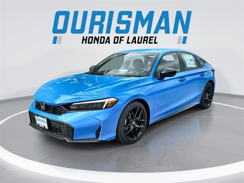Ourisman Honda of Laurel welcomes you to come test drive this NEW 2026 Boost Blue Pearl Honda Civic Sport FWD is well equipped and includes these features and benefits:Blk Lth &Clth Artificial Leather, 4-Wheel Disc Brakes, 8 Speakers, ABS brakes, Adaptive Cruise Control: Adaptive Cruise Control (ACC) with Low-Speed Follow, Air Conditioning, Alloy wheels, AM/FM radio, Apple CarPlay/Android Auto, Auto High-beam Headlights, Automatic temperature control, Blind Spot Information (BSI) System warning, Brake assist, Bumpers: body-color, Cloth/Leatherette Seating Surfaces, Delay-off headlights, Driver door bin, Driver vanity mirror, Dual front impact airbags, Dual front side impact airbags, Electronic Stability Control, Emergency communication system: HondaLink, Exterior Parking Camera Rear, Four wheel independent suspension, Front anti-roll bar, Front Bucket Seats, Front Center Armrest, Front reading lights, Fully automatic headlights, Heated door mirrors, HondaLink, Illuminated entry, Knee airbag, Lane departure: Lane Keeping Assist System (LKAS) active, Leather Shift Knob, Low tire pressure warning, Occupant sensing airbag, Outside temperature display, Overhead airbag, Panic alarm, Passenger door bin, Passenger vanity mirror, Power door mirrors, Power steering, Power windows, Radio data system, Radio: 180-Watt Audio System, Rear anti-roll bar, Rear side impact airbag, Rear window defroster, Rear window wiper, Remote keyless entry, Security system, Speed control, Speed-sensing steering, Split folding rear seat, Steering wheel mounted audio controls, Tachometer, Telescoping steering wheel, Tilt steering wheel, Traction control, Trip computer, and Wheels: 18"" Gloss Black Alloy. 30/38 City/Highway MPG Blk Lth &Clth Artificial Leather.Prices do not include tax, tags, title, registration, electronic filing fee, processing fee of $800 (Not required by law), iKon (Optional $1,295.), And any reconditioning fees.