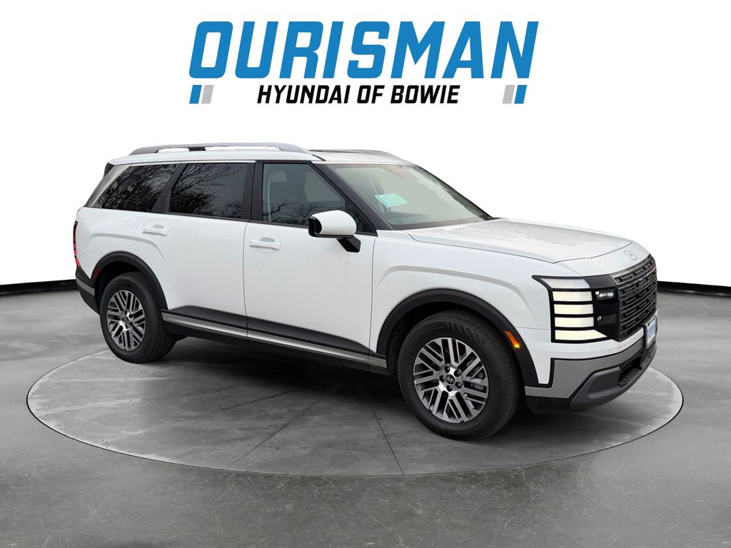 This NEW 2026 Creamy White Pearl Hyundai Palisade SEL Convenience AWD is well equipped and includes these features and benefits:Option Group 01, 3rd row seats: split-bench, 4-Wheel Disc Brakes, 8 Speakers, ABS brakes, Air Conditioning, All-Season Fitted Liners, Alloy wheels, AM/FM radio: SiriusXM, Apple CarPlay & Android Auto, Auto High-beam Headlights, Auto-dimming Rear-View mirror, Auto-leveling suspension, Automatic temperature control, Brake assist, Bumpers: body-color, Cargo Blocks, Cargo Net, Carpeted Floor Mats, Compass, Cruise Control, Delay-off headlights, Driver door bin, Driver vanity mirror, Dual front impact airbags, Dual front side impact airbags, Electronic Stability Control, Emergency communication system: Bluelink+, Exterior Parking Camera Rear, First Aid Kit, Four wheel independent suspension, Front anti-roll bar, Front Bucket Seats, Front Center Armrest, Front dual zone A/C, Front reading lights, Fully automatic headlights, H-Tex Leatherette Seat Trim, Heated door mirrors, Heated Front Bucket Seats, Heated front seats, Illuminated entry, Knee airbag, Leather steering wheel, Low tire pressure warning, Navigation System, Occupant sensing airbag, Outside temperature display, Overhead airbag, Overhead console, Panic alarm, Passenger door bin, Passenger vanity mirror, Power door mirrors, Power driver seat, Power Liftgate, Power moonroof, Power passenger seat, Power steering, Power windows, Radio data system, Radio: Infotainment Navigation System, Rear air conditioning, Rear anti-roll bar, Rear audio controls, Rear reading lights, Rear side impact airbag, Rear window defroster, Rear window wiper, Reclining 3rd row seat, Remote keyless entry, Roadside Assistance Kit, Security system, Split folding rear seat, Spoiler, Steering wheel mounted audio controls, Tachometer, Telescoping steering wheel, Tilt steering wheel, Traction control, Trip computer, Turn signal indicator mirrors, Variably intermittent wipers, and Wheels: 18" x 8.0J Alloy.V6Pricing Disclaimer: We make every effort to provide accurate information, but please verify options and price prior to purchase. All financing is subject to approved credit. Prices do not include tax, tags, title, registration, electronic filing fee, processing fee of $800 (Not required by law) Located at 2404 Robert S. Crain Hwy A, Bowie, MD 20716. Price includes: $1250 - Hyundai HMF Dealer Choice : $1250 discount and 5.49% APR for 24 months. $44.09 per $1000 financed. Available to well qualified buyers who finance through Hyundai Motor Finance. H704. Exp. 12/01/2025