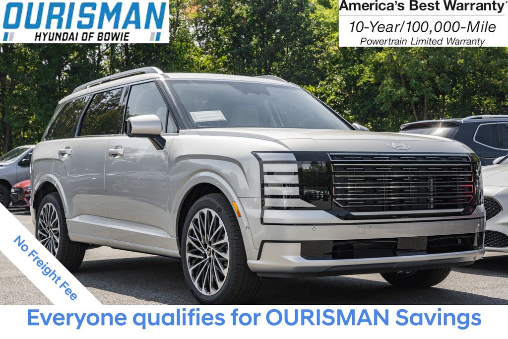 This NEW 2026 Silver Metallic Hyundai Palisade Calligraphy AWD is well equipped and includes these features and benefits:Option Group 01, 14 Speakers, 3rd row seats: split-bench, 4-Wheel Disc Brakes, ABS brakes, Air Conditioning, Alloy wheels, AM/FM radio: SiriusXM, Apple CarPlay & Android Auto, Audio memory, Auto High-beam Headlights, Auto-dimming door mirrors, Auto-dimming Rear-View mirror, Auto-leveling suspension, Automatic temperature control, Brake assist, Bumpers: body-color, Cargo Tray, Carpeted Floor Mats, Compass, Cruise Control, Delay-off headlights, Driver door bin, Driver vanity mirror, Dual front impact airbags, Dual front side impact airbags, Electronic Stability Control, Emergency communication system: None, Exterior Parking Camera Rear, First Aid Kit, Four wheel independent suspension, Front anti-roll bar, Front Bucket Seats, Front Center Armrest, Front dual zone A/C, Front reading lights, Fully automatic headlights, Garage door transmitter: HomeLink, Genuine wood console insert, Genuine wood dashboard insert, Heads-Up Display, Heated and Ventilated Front Bucket Seats, Heated door mirrors, Heated front seats, Heated rear seats, Heated steering wheel, HVAC memory, Illuminated entry, Knee airbag, Leather steering wheel, Low tire pressure warning, Memory seat, Navigation System, Occupant sensing airbag, Outside temperature display, Overhead airbag, Overhead console, Panic alarm, Passenger door bin, Passenger vanity mirror, Power door mirrors, Power driver seat, Power Liftgate, Power moonroof, Power passenger seat, Power steering, Power windows, Premium Nappa Leather Seat Trim, Radio data system, Radio: Infotainment Navigation System, Rain sensing wipers, Rear air conditioning, Rear anti-roll bar, Rear audio controls, Rear reading lights, Rear side impact airbag, Rear window defroster, Rear window wiper, Reclining 3rd row seat, Remote keyless entry, Security system, Split folding rear seat, Spoiler, Steering wheel mounted audio controls, Tachometer, Telescoping steering wheel, Tilt steering wheel, Traction control, Trip computer, Turn signal indicator mirrors, Variably intermittent wipers, Ventilated front seats, Ventilated rear seats, and Wheels: 21" x 8.5J Alloy.V6Pricing Disclaimer: We make every effort to provide accurate information, but please verify options and price prior to purchase. All financing is subject to approved credit. Prices do not include tax, tags, title, registration, electronic filing fee, processing fee of $800 (Not required by law) Located at 2404 Robert S. Crain Hwy A, Bowie, MD 20716. Price includes: $400 - College Grad Program Offer (the “Offer”) is limited to well-qualified customers who meet all the following Offer criteria, and who finance the purchase or lease of their new Hyundai, subject to credit approval, through Hyundai Motor Finance (HMF). Offer applies to all new and unused Hyundai excluding vehicles with Final Pay. Only available at participating Hyundai dealerships. Must have graduated with a Master’s, Bachelor’s or Associate’s degree from a U.S.-accredited college or registered nursing school within the past two (2) years or will graduate from such a school within the next six months from date of finance contract. Exp. 02/02/2026 $500 - Military Program. Exp. 02/02/2026 $750 - Hyundai HMF Dealer Choice : $750 discount and 5.39% APR for 24 months. $44.05 per $1000 financed. Available to well qualified buyers who finance through Hyundai Motor Finance. H704. Exp. 02/02/2026