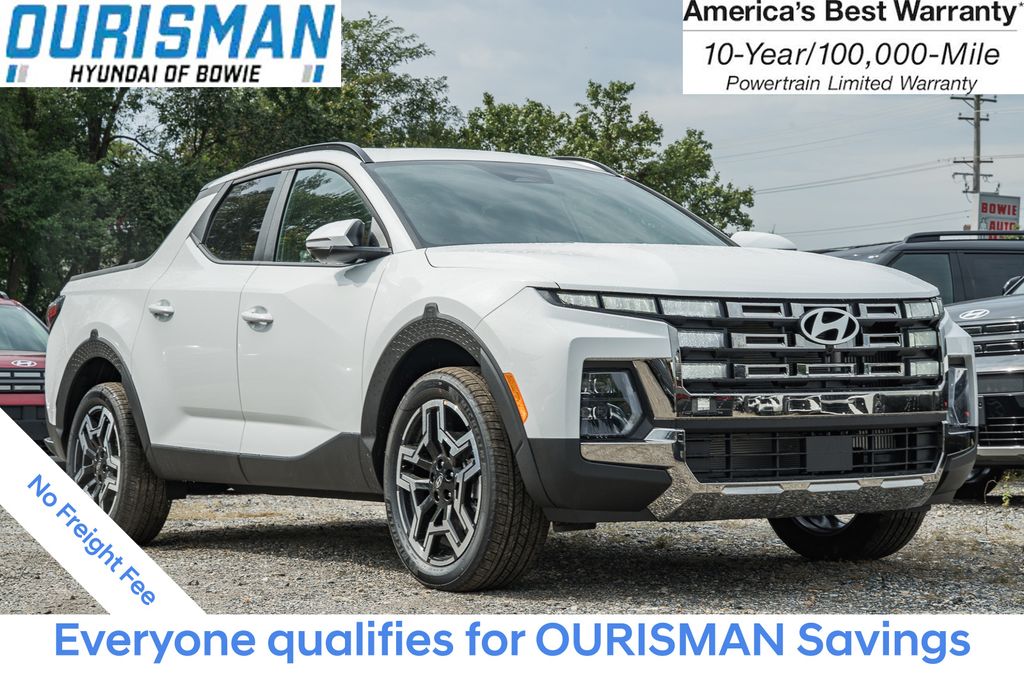 This NEW 2026 White Hyundai Santa Cruz Limited AWD is well equipped and includes these features and benefits:Option Group 01, 3.51 Axle Ratio, 4-Wheel Disc Brakes, 8 Speakers, ABS brakes, Air Conditioning, All Season Fitted Liners, Alloy wheels, AM/FM radio: SiriusXM, Apple CarPlay & Android Auto, Audio memory, Auto High-beam Headlights, Auto-dimming Rear-View mirror, Auto-leveling suspension, Automatic temperature control, Bed Cargo Net, Bed Mat, Brake assist, Bumpers: body-color, Cargo Net, Carpeted Floor Mats, Compass, Cruise Control, Delay-off headlights, Driver door bin, Driver vanity mirror, Dual front impact airbags, Dual front side impact airbags, Electronic Stability Control, Emblem Kit, Emergency communication system: None, Exterior Parking Camera Rear, First Aid Kit, Four wheel independent suspension, Front anti-roll bar, Front Bucket Seats, Front Center Armrest, Front dual zone A/C, Front reading lights, Fully automatic headlights, Garage door transmitter: HomeLink, Heated and Ventilated Front Bucket Seats, Heated door mirrors, Heated front seats, Heated steering wheel, Illuminated entry, Leather Shift Knob, Leather steering wheel, Leather-Trimmed Seat Trim, Low tire pressure warning, Memory seat, Navigation System, Occupant sensing airbag, Outside temperature display, Overhead airbag, Overhead console, Panic alarm, Passenger door bin, Passenger vanity mirror, Power door mirrors, Power driver seat, Power moonroof, Power passenger seat, Power steering, Power windows, Radio data system, Radio: AM/FM/HD with Bose Premium Audio System, Rain sensing wipers, Rear anti-roll bar, Rear reading lights, Rear seat center armrest, Rear side impact airbag, Rear step bumper, Rear window defroster, Remote keyless entry, Security system, Speed-sensing steering, Split folding rear seat, Spoiler, Steering wheel mounted audio controls, Tachometer, Telescoping steering wheel, Tilt steering wheel, Traction control, Trip computer, Turn signal indicator mirrors, Variably intermittent wipers, Ventilated front seats, and Wheels: 20" x 7.5J Alloy.2.5L I4Pricing Disclaimer: We make every effort to provide accurate information, but please verify options and price prior to purchase. All financing is subject to approved credit. Prices do not include tax, tags, title, registration, electronic filing fee, processing fee of $800 (Not required by law) Located at 2404 Robert S. Crain Hwy A, Bowie, MD 20716. Price includes: $250 - Hyundai HMF Dealer Choice : $250 discount and 5.39% APR for 24 months. $44.05 per $1000 financed. Available to well qualified buyers who finance through Hyundai Motor Finance. H704. Exp. 02/02/2026 $400 - College Grad Program Offer (the “Offer”) is limited to well-qualified customers who meet all the following Offer criteria, and who finance the purchase or lease of their new Hyundai, subject to credit approval, through Hyundai Motor Finance (HMF). Offer applies to all new and unused Hyundai excluding vehicles with Final Pay. Only available at participating Hyundai dealerships. Must have graduated with a Master’s, Bachelor’s or Associate’s degree from a U.S.-accredited college or registered nursing school within the past two (2) years or will graduate from such a school within the next six months from date of finance contract. Exp. 02/02/2026 $500 - Military Program. Exp. 02/02/2026