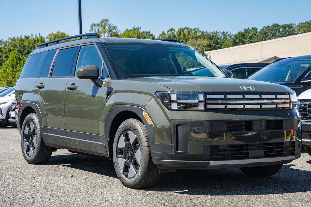 This NEW 2026 Green Hyundai Santa Fe Hybrid SEL AWD is well equipped and includes these features and benefits:Option Group 01, I4, 18" x 7.5J Alloy Wheels, 3rd row seats: bench, 4-Wheel Disc Brakes, 6 Speakers, ABS brakes, Air Conditioning, Alloy wheels, AM/FM radio: SiriusXM, Apple CarPlay & Android Auto, Auto High-beam Headlights, Automatic temperature control, Brake assist, Bumpers: body-color, Cargo Cover/Screen, Cargo Net, Cargo Organizer, Cargo Tray, Carpeted Floor Mats, Cruise Control, Delay-off headlights, Driver door bin, Driver vanity mirror, Dual front impact airbags, Dual front side impact airbags, Electronic Stability Control, Emergency communication system, Exterior Parking Camera Rear, First Aid Kit, Four wheel independent suspension, Front anti-roll bar, Front Bucket Seats, Front Center Armrest, Front dual zone A/C, Front reading lights, Fully automatic headlights, H-Tex Leatherette Seat Trim, Heated door mirrors, Heated Front Bucket Seats, Heated front seats, Illuminated entry, Knee airbag, Leather steering wheel, Low tire pressure warning, Mudguards, Occupant sensing airbag, Outside temperature display, Overhead airbag, Overhead console, Panic alarm, Passenger door bin, Passenger vanity mirror, Power door mirrors, Power driver seat, Power Liftgate, Power steering, Power windows, Radio: AM/FM/HD Display Audio, Rear anti-roll bar, Rear seat center armrest, Rear side impact airbag, Rear window defroster, Rear window wiper, Remote keyless entry, Security system, Severe Weather Kit, Speed-sensing steering, Split folding rear seat, Spoiler, Steering wheel mounted audio controls, Tachometer, Telescoping steering wheel, Tilt steering wheel, Traction control, Trip computer, Turn signal indicator mirrors, and Variably intermittent wipers.I4Pricing Disclaimer: We make every effort to provide accurate information, but please verify options and price prior to purchase. All financing is subject to approved credit. Prices do not include tax, tags, title, registration, electronic filing fee, processing fee of $800 (Not required by law) Located at 2404 Robert S. Crain Hwy A, Bowie, MD 20716. Price includes: $4250 - Hyundai HMF Dealer Choice : $4250 discount and 5.49% APR for 24 months. $44.09 per $1000 financed. Available to well qualified buyers who finance through Hyundai Motor Finance. H704. Exp. 12/01/2025