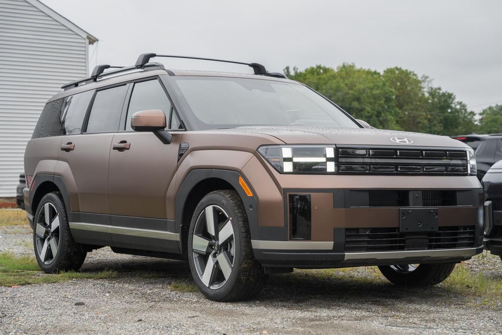 This NEW 2026 Earthy Brass Matte Hyundai Santa Fe Hybrid Limited AWD is well equipped and includes these features and benefits:7-Passenger Bench Seating (Option Group 02), I4, 12 Speakers - Bose Audio, 3rd row seats: bench, 4-Wheel Disc Brakes, ABS brakes, Air Conditioning, Alloy wheels, AM/FM radio: SiriusXM, Apple CarPlay & Android Auto, Auto High-beam Headlights, Auto-dimming Rear-View mirror, Automatic temperature control, Brake assist, Bumpers: body-color, Cargo Blocks, Cargo Net, Cargo Tray, Carpeted Floor Mats, Cruise Control, Delay-off headlights, Driver door bin, Driver vanity mirror, Dual front impact airbags, Dual front side impact airbags, Electronic Stability Control, Emergency communication system, Exterior Parking Camera Rear, First Aid Kit, Four wheel independent suspension, Front anti-roll bar, Front Bucket Seats, Front Center Armrest, Front dual zone A/C, Front reading lights, Fully automatic headlights, Garage door transmitter: HomeLink, Heated & Ventilated Front Bucket Seats, Heated door mirrors, Heated front seats, Heated rear seats, Heated steering wheel, Illuminated entry, Knee airbag, Leather Seat Trim, Leather steering wheel, Low tire pressure warning, Memory seat, Mudguards, Navigation System, Occupant sensing airbag, Outside temperature display, Overhead airbag, Overhead console, Panic alarm, Passenger door bin, Passenger vanity mirror, Power door mirrors, Power driver seat, Power Liftgate, Power moonroof, Power passenger seat, Power steering, Power windows, Radio: AM/FM/HD Bose Premium Audio System, Rain sensing wipers, Rear anti-roll bar, Rear side impact airbag, Rear window defroster, Rear window wiper, Remote keyless entry, Roof Rack Crossbars, Security system, Speed-sensing steering, Split folding rear seat, Spoiler, Steering wheel mounted audio controls, Tachometer, Telescoping steering wheel, Tilt steering wheel, Traction control, Trip computer, Turn signal indicator mirrors, Variably intermittent wipers, Ventilated front seats, and Wheels: 20" x 8.5J Alloy.I4Pricing Disclaimer: We make every effort to provide accurate information, but please verify options and price prior to purchase. All financing is subject to approved credit. Prices do not include tax, tags, title, registration, electronic filing fee, processing fee of $800 (Not required by law) Located at 2404 Robert S. Crain Hwy A, Bowie, MD 20716. Price includes: $4250 - Hyundai HMF Dealer Choice : $4250 discount and 5.49% APR for 24 months. $44.09 per $1000 financed. Available to well qualified buyers who finance through Hyundai Motor Finance. H704. Exp. 12/01/2025