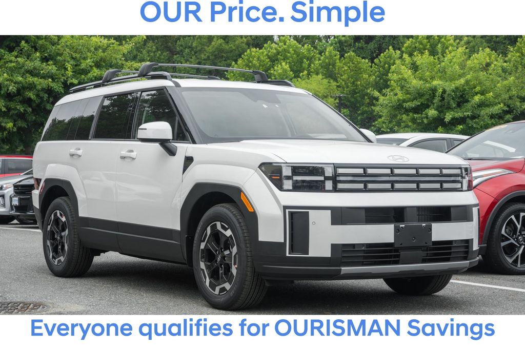 This NEW 2026 White Hyundai Santa Fe SEL AWD is well equipped and includes these features and benefits:Option Group 01, AWD, Black Premium Synthetic, 18" x 7.5J Alloy Wheels, 3rd row seats: bench, 4-Wheel Disc Brakes, 6 Speakers, ABS brakes, Air Conditioning, Alloy wheels, AM/FM radio: SiriusXM, Apple CarPlay & Android Auto, Auto High-beam Headlights, Automatic temperature control, Brake assist, Bumpers: body-color, Cargo Blocks, Cargo Net, Cargo Tray, Carpeted Floor Mats, Cruise Control, Delay-off headlights, Driver door bin, Driver vanity mirror, Dual front impact airbags, Dual front side impact airbags, Electronic Stability Control, Emergency communication system, Exterior Parking Camera Rear, First Aid Kit, Four wheel independent suspension, Front anti-roll bar, Front Bucket Seats, Front Center Armrest, Front dual zone A/C, Front reading lights, Fully automatic headlights, H-Tex Leatherette Seat Trim, Heated door mirrors, Heated Front Bucket Seats, Heated front seats, Illuminated entry, Knee airbag, Leather steering wheel, Low tire pressure warning, Mudguards, Occupant sensing airbag, Outside temperature display, Overhead airbag, Overhead console, Panic alarm, Passenger door bin, Passenger vanity mirror, Power door mirrors, Power driver seat, Power Liftgate, Power steering, Power windows, Radio: AM/FM/HD Display Audio, Rear anti-roll bar, Rear seat center armrest, Rear side impact airbag, Rear window defroster, Rear window wiper, Remote keyless entry, Roadside Assistance Kit, Roof Rack Crossbars, Security system, Speed-sensing steering, Split folding rear seat, Spoiler, Steering wheel mounted audio controls, Tachometer, Telescoping steering wheel, Tilt steering wheel, Traction control, Trip computer, Turn signal indicator mirrors, and Variably intermittent wipers.2.5L I4Pricing Disclaimer: We make every effort to provide accurate information, but please verify options and price prior to purchase. All financing is subject to approved credit. Prices do not include tax, tags, title, registration, electronic filing fee, processing fee of $800 (Not required by law) Located at 2404 Robert S. Crain Hwy A, Bowie, MD 20716. Price includes: $3500 - Hyundai HMF Dealer Choice : $3500 discount and 5.49% APR for 24 months. $44.09 per $1000 financed. Available to well qualified buyers who finance through Hyundai Motor Finance. H704. Exp. 01/05/2026 $400 - College Grad Program Offer (the “Offer”) is limited to well-qualified customers who meet all the following Offer criteria, and who finance the purchase or lease of their new Hyundai, subject to credit approval, through Hyundai Motor Finance (HMF). Offer applies to all new and unused Hyundai excluding vehicles with Final Pay. Only available at participating Hyundai dealerships. Must have graduated with a Master’s, Bachelor’s or Associate’s degree from a U.S.-accredited college or registered nursing school within the past two (2) years or will graduate from such a school within the next six months from date of finance contract. Exp. 01/05/2026 $500 - Military Program. Exp. 01/05/2026