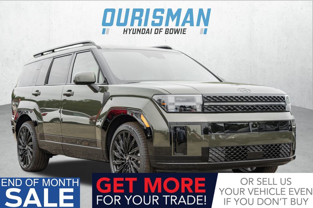 This NEW 2026 Green Hyundai Santa Fe Calligraphy AWD is well equipped and includes these features and benefits:Option Group 01, AWD, Pecan Brown Leather, 12 Speakers - Bose Audio, 3rd row seats: bench, 4-Wheel Disc Brakes, ABS brakes, Air Conditioning, All Season Fitted Liners, Alloy wheels, AM/FM radio: SiriusXM, Apple CarPlay & Android Auto, Auto High-beam Headlights, Auto-dimming Rear-View mirror, Automatic temperature control, Brake assist, Bumpers: body-color, Cargo Cover/Screen, Cargo Net, Cargo Tray, Carpeted Floor Mats, Cruise Control, Delay-off headlights, Driver door bin, Driver vanity mirror, Dual front impact airbags, Dual front side impact airbags, Electronic Stability Control, Emergency communication system, Exterior Parking Camera Rear, First Aid Kit, Four wheel independent suspension, Front anti-roll bar, Front Bucket Seats, Front Center Armrest, Front dual zone A/C, Front reading lights, Fully automatic headlights, Garage door transmitter: HomeLink, Heads-Up Display, Heated & Ventilated Front Bucket Seats, Heated door mirrors, Heated front seats, Heated rear seats, Heated steering wheel, Illuminated entry, Knee airbag, Leather steering wheel, Low tire pressure warning, Memory seat, Navigation System, Occupant sensing airbag, Outside temperature display, Overhead airbag, Overhead console, Panic alarm, Passenger door bin, Passenger vanity mirror, Power door mirrors, Power driver seat, Power Liftgate, Power moonroof, Power passenger seat, Power steering, Power windows, Quilted Premium Nappa Leather Seat Trim, Radio: AM/FM/HD Bose Premium Audio System, Rain sensing wipers, Rear anti-roll bar, Rear side impact airbag, Rear window defroster, Rear window wiper, Remote keyless entry, Security system, Severe Weather Kit, Speed-sensing steering, Split folding rear seat, Spoiler, Steering wheel mounted audio controls, Tachometer, Telescoping steering wheel, Tilt steering wheel, Traction control, Trip computer, Turn signal indicator mirrors, Variably intermittent wipers, Ventilated front seats, and Wheels: 21" x 8.5J Unique Dark Finish Alloy.2.5L I4Pricing Disclaimer: We make every effort to provide accurate information, but please verify options and price prior to purchase. All financing is subject to approved credit. Prices do not include tax, tags, title, registration, electronic filing fee, processing fee of $800 (Not required by law) Located at 2404 Robert S. Crain Hwy A, Bowie, MD 20716. Price includes: $3500 - Hyundai HMF Dealer Choice: $3500 discount and 5.99% APR for 24 months. $44.32 per $1000 financed. Available to well qualified buyers who finance through Hyundai Motor Finance. H704. Exp. 11/03/2025