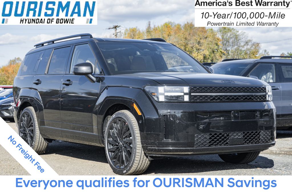 This NEW 2026 Phantom Black Hyundai Santa Fe Calligraphy AWD is well equipped and includes these features and benefits:Option Group 01, AWD, Pecan Brown Leather, 12 Speakers - Bose Audio, 3rd row seats: bench, 4-Wheel Disc Brakes, ABS brakes, Air Conditioning, All Season Fitted Liners, Alloy wheels, AM/FM radio: SiriusXM, Apple CarPlay & Android Auto, Auto High-beam Headlights, Auto-dimming Rear-View mirror, Automatic temperature control, Brake assist, Bumpers: body-color, Cargo Cover/Screen, Cargo Net, Cargo Tray, Carpeted Floor Mats, Cruise Control, Delay-off headlights, Driver door bin, Driver vanity mirror, Dual front impact airbags, Dual front side impact airbags, Electronic Stability Control, Emergency communication system, Exterior Parking Camera Rear, First Aid Kit, Four wheel independent suspension, Front anti-roll bar, Front Bucket Seats, Front Center Armrest, Front dual zone A/C, Front reading lights, Fully automatic headlights, Garage door transmitter: HomeLink, Heads-Up Display, Heated and Ventilated Front Bucket Seats, Heated door mirrors, Heated front seats, Heated rear seats, Heated steering wheel, Illuminated entry, Knee airbag, Leather steering wheel, Low tire pressure warning, Memory seat, Navigation System, Occupant sensing airbag, Outside temperature display, Overhead airbag, Overhead console, Panic alarm, Passenger door bin, Passenger vanity mirror, Power door mirrors, Power driver seat, Power Liftgate, Power moonroof, Power passenger seat, Power steering, Power windows, Quilted Premium Nappa Leather Seat Trim, Radio: AM/FM/HD Bose Premium Audio System, Rain sensing wipers, Rear anti-roll bar, Rear side impact airbag, Rear window defroster, Rear window wiper, Remote keyless entry, Roadside Assistance Kit, Security system, Speed-sensing steering, Split folding rear seat, Spoiler, Steering wheel mounted audio controls, Tachometer, Telescoping steering wheel, Tilt steering wheel, Traction control, Trip computer, Turn signal indicator mirrors, Variably intermittent wipers, Ventilated front seats, and Wheels: 21" x 8.5J Unique Dark Finish Alloy.2.5L I4Pricing Disclaimer: We make every effort to provide accurate information, but please verify options and price prior to purchase. All financing is subject to approved credit. Prices do not include tax, tags, title, registration, electronic filing fee, processing fee of $800 (Not required by law) Located at 2404 Robert S. Crain Hwy A, Bowie, MD 20716. Price includes: $1500 - Hyundai HMF Dealer Choice : $1500 discount and 5.39% APR for 24 months. $44.05 per $1000 financed. Available to well qualified buyers who finance through Hyundai Motor Finance. H704. Exp. 02/02/2026 $400 - College Grad Program Offer (the “Offer”) is limited to well-qualified customers who meet all the following Offer criteria, and who finance the purchase or lease of their new Hyundai, subject to credit approval, through Hyundai Motor Finance (HMF). Offer applies to all new and unused Hyundai excluding vehicles with Final Pay. Only available at participating Hyundai dealerships. Must have graduated with a Master’s, Bachelor’s or Associate’s degree from a U.S.-accredited college or registered nursing school within the past two (2) years or will graduate from such a school within the next six months from date of finance contract. Exp. 02/02/2026 $500 - Military Program. Exp. 02/02/2026