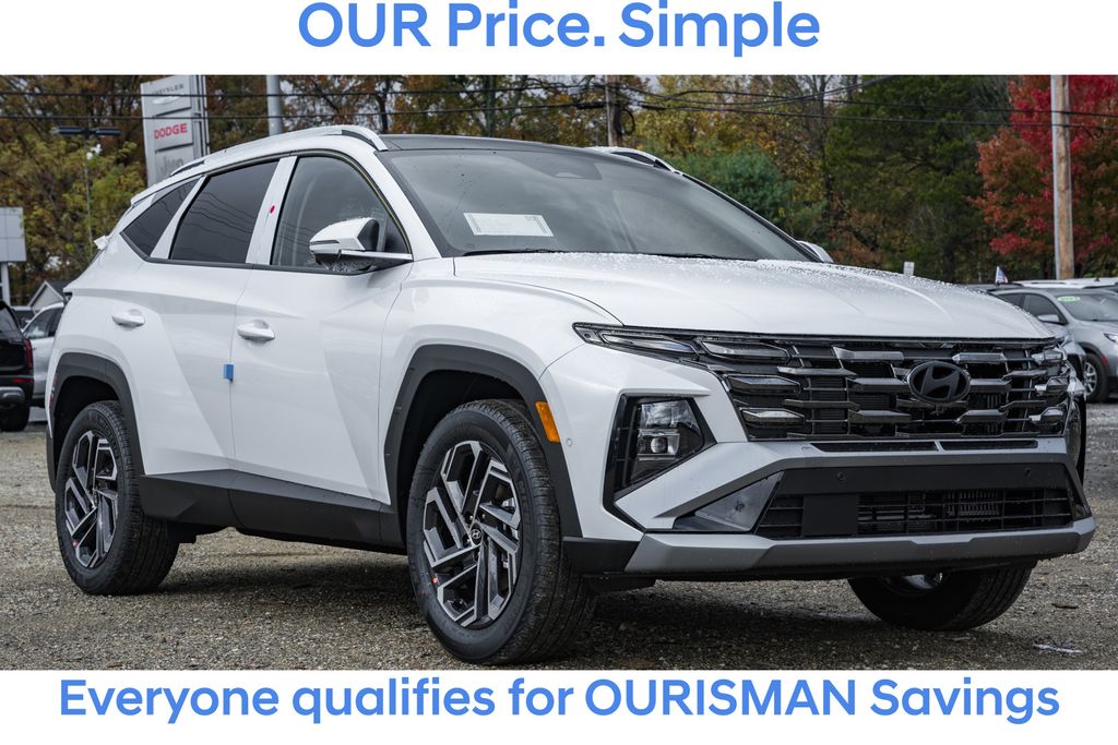 This NEW 2026 White Pearl Hyundai Tucson Hybrid Limited AWD is well equipped and includes these features and benefits:Option Group 01, Tow & Go Package (Ball Mount Kit and Tow Hitch), 1.6L I4 DGI Hybrid Turbocharged DOHC 16V LEV3-SULEV30, 4-Wheel Disc Brakes, 8 Speakers, ABS brakes, Air Conditioning, Alloy wheels, AM/FM radio: SiriusXM, Apple CarPlay & Android Auto, Auto High-beam Headlights, Auto-dimming Rear-View mirror, Automatic temperature control, Brake assist, Bumpers: body-color, Cargo Net, Cargo Tray, Carpeted Floor Mats, Cruise Control, Delay-off headlights, Driver door bin, Driver vanity mirror, Dual front impact airbags, Dual front side impact airbags, Electronic Stability Control, Emergency communication system: Bluelink+, First Aid Kit, Four wheel independent suspension, Front anti-roll bar, Front Bucket Seats, Front Center Armrest, Front dual zone A/C, Front reading lights, Fully automatic headlights, Garage door transmitter: HomeLink, Heads-Up Display, Heated & Ventilated Front Bucket Seats, Heated door mirrors, Heated front seats, Heated rear seats, Heated steering wheel, Illuminated entry, Leather steering wheel, Leather-Trimmed Seat Trim, Low tire pressure warning, Memory seat, Navigation System, Occupant sensing airbag, Outside temperature display, Overhead airbag, Overhead console, Panic alarm, Passenger door bin, Passenger vanity mirror, Power door mirrors, Power driver seat, Power Liftgate, Power moonroof, Power passenger seat, Power steering, Power windows, Radio data system, Radio: Bose Premium w/AM/FM/HD Audio System, Rain sensing wipers, Rear anti-roll bar, Rear reading lights, Rear seat center armrest, Rear side impact airbag, Rear window defroster, Rear window wiper, Remote keyless entry, Security system, Split folding rear seat, Spoiler, Steering wheel mounted audio controls, Tachometer, Telescoping steering wheel, Tilt steering wheel, Traction control, Trip computer, Turn signal indicator mirrors, Variably intermittent wipers, Ventilated front seats, and Wheels: 19" x 7.5J Alloy.1.6L I4 DGI Hybrid Turbocharged DOHC 16V LEV3-SULEV30 37/36 City/Highway MPGPricing Disclaimer: We make every effort to provide accurate information, but please verify options and price prior to purchase. All financing is subject to approved credit. Prices do not include tax, tags, title, registration, electronic filing fee, processing fee of $800 (Not required by law) Located at 2404 Robert S. Crain Hwy A, Bowie, MD 20716. Price includes: $3000 - Hyundai HMF Dealer Choice : $3000 discount and 5.49% APR for 24 months. $44.09 per $1000 financed. Available to well qualified buyers who finance through Hyundai Motor Finance. H704. Exp. 01/02/2026 $400 - College Grad Program Offer (the “Offer”) is limited to well-qualified customers who meet all the following Offer criteria, and who finance the purchase or lease of their new Hyundai, subject to credit approval, through Hyundai Motor Finance (HMF). Offer applies to all new and unused Hyundai excluding vehicles with Final Pay. Only available at participating Hyundai dealerships. Must have graduated with a Master’s, Bachelor’s or Associate’s degree from a U.S.-accredited college or registered nursing school within the past two (2) years or will graduate from such a school within the next six months from date of finance contract. Exp. 01/02/2026 $500 - Military Program. Exp. 01/02/2026