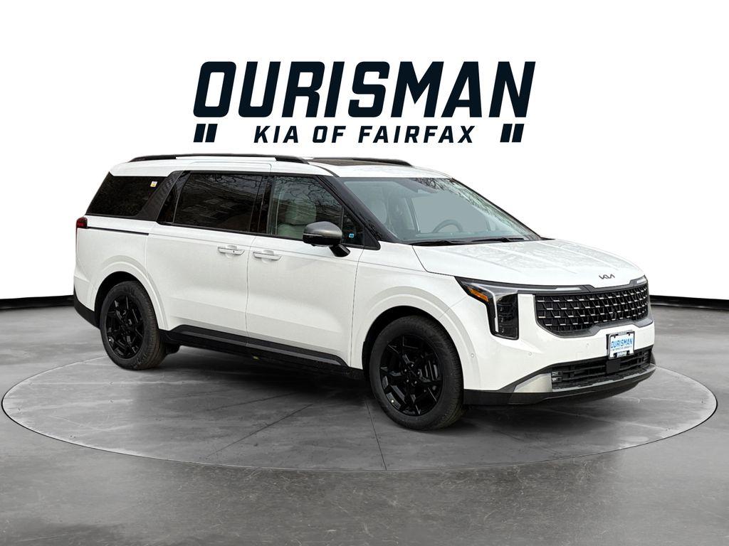 2026 Kia Carnival Hybrid Carnival Hybrid SX Prestige In Transit, 4D Passenger Van, 1.6L I4 DGI Hybrid Turbocharged DOHC 16V LEV3-SULEV30, 6-Speed Automatic, FWD, White Pearl, Navy/Gry Lth.Check out all these Options: Carnival Hybrid SX Prestige In Transit, 4D Passenger Van, 1.6L I4 DGI Hybrid Turbocharged DOHC 16V LEV3-SULEV30, 6-Speed Automatic, FWD, White Pearl, Navy/Gry Lth, 3rd row seats: split-bench, 4-Wheel Disc Brakes, ABS brakes, Air Conditioning, Alloy wheels, AM/FM radio: SiriusXM, Apple CarPlay & Android Auto, Auto High-beam Headlights, Automatic temperature control, Brake assist, Bumpers: body-color, Compass, Delay-off headlights, Driver door bin, Driver vanity mirror, Dual front impact airbags, Dual front side impact airbags, Electronic Stability Control, Emergency communication system, Exterior Parking Camera Rear, Four wheel independent suspension, Front anti-roll bar, Front Bucket Seats, Front Center Armrest, Front dual zone A/C, Front fog lights, Front reading lights, Fully automatic headlights, Heated & Ventilated Front Bucket Seats, Heated door mirrors, Heated front seats, Illuminated entry, Knee airbag, Leather Shift Knob, Leather steering wheel, Low tire pressure warning, Memory seat, Navigation System, Occupant sensing airbag, Outside temperature display, Overhead airbag, Overhead console, Panic alarm, Passenger door bin, Passenger vanity mirror, Power 2nd-Row Moonroof, Power door mirrors, Power driver seat, Power Liftgate, Power moonroof, Power passenger seat, Power steering, Power windows, Radio: Navigation System w/SiriusXM, Rain sensing wipers, Rear air conditioning, Rear anti-roll bar, Rear reading lights, Rear window defroster, Rear window wiper, Reclining 3rd row seat, Remote keyless entry, Security system, Speed control, Speed-sensing steering, Split folding rear seat, Spoiler, Steering wheel mounted audio controls, Tachometer, Telescoping steering wheel, Tilt steering wheel, Traction control, Trip computer, Turn signal indicator mirrors, Variably intermittent wipers, Ventilated front seats, and Wheels: 19"" Black D-Cut Customizing.RECALL NOTICE: Some vehicles offered for sale may be subject to unrepaired manufacturer safety recalls. To determine the recall status of a vehicle, visit https://www.nhtsa.gov/recalls or click here. We make every effort to provide accurate information, but please verify options and price before purchasing. All vehicles are subject to prior sale. All financing is subject to approved credit. All prices exclude tax, tags, title, registration, electronic filing fee and processing fee of $999. Prices include all applicable rebates and incentives. Additional rebates and incentives may apply to those who qualify. Pricing may not be compatible with special factory financing. Prices are valid based on manufacturer incentive program time periods, which vary. MSRP is the Manufacturer's Suggested Retail Price (MSRP) only and actual dealer pricing may vary. Due to availability, some images and options shown may be stock images or examples and may not reflect exact vehicle color, trim, options, or other specifications. Consult dealer for more information and details.
