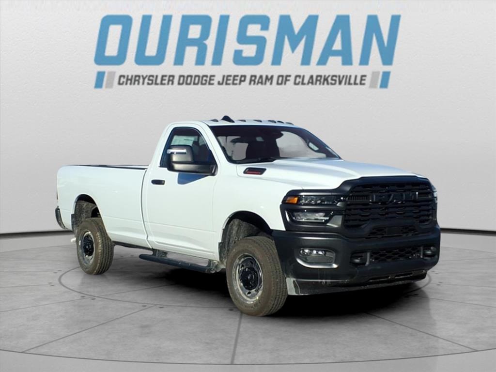 This NEW 2026 Bright White Clearcoat Ram 2500 Tradesman 4WD is well equipped and includes these features and benefits:Commercial Features Package, Quick Order Package 2UA Tradesman, Tradesman Level 1 Equipment Group (115V Auxiliary Front Power Outlet, 12" Touchscreen Display, 4 Way Front Headrests, 40/20/40 Split Bench Seat, 400W Inverter, 4G LTE Wi-Fi Hot Spot, 6 Speakers, Air Cond ATC w/Dual Zone Control, Alexa Built-In, Anti-Spin Differential Rear Axle, Apple CarPlay, Auto-Dimming Rear-View Mirror, Black Exterior Mirrors, Carpet Floor Covering, Cloth 40/20/40 Bench Seat, Connected Travel & Traffic Services, Connectivity - US/Canada, Convenience Group, Disassociated Touchscreen Display, Emergency Vehicle Alert System (EVAS), Exterior 115V AC Outlet, Exterior Mirrors Courtesy Lamps, Exterior Mirrors w/Heating Element, Exterior Mirrors w/Supplemental Signals, For Details Visit DriveUconnect.com, For More Info Call 800-643-2112, Front 1-Touch Down Power Windows, Front Armrest w/Cupholders, Front Floor Mats, Global Telematics Box Module (TBM), Google Android Auto, GPS Antenna Input, GPS Navigation, HD Radio, Integrated Voice Command w/Bluetooth, Manual Adjust 4-Way Driver Seat, Manual Adjust 4-Way Front Passenger Seat, Manual Folding Exterior Mirrors, Manual Telescoping Mirrors, Mirror Running Lights, Mopar Black Tubular Side Steps, Off-Road Info Pages, ParkSense Front/Rear Park Assist System, Power Adjust Mirrors, Power Heated Folding Telescopic Mirrors, Power-Adjustable Convex Aux Mirrors, Radio: Uconnect 5 Nav w/12.0" Display, Rear Sliding Window, Remote Keyless Entry, Remote USB Port - Charge Only, Selectable Tire Fill Alert, SiriusXM Radio Service, SiriusXM w/360L, Speed Sensitive Power Locks, Tinted Acoustic Windshield Glass, Trailer Tow Pages, and Upgraded Door Trim Panel), 3.73 Axle Ratio, 4 Speakers, 4-Wheel Disc Brakes, ABS brakes, Air Conditioning, AM/FM radio: SiriusXM, Apple CarPlay/Android Auto, Black Wheel Center Hub, Brake assist, Clearance Lamps, Compass, Delay-off headlights, Driver door bin, Dual Alternators Rated At 400 Amps, Dual front impact airbags, Dual front side impact airbags, Electronic Stability Control, Front anti-roll bar, Front Center Armrest w/Storage, Front fog lights, Front License Plate Bracket, Front reading lights, Fully automatic headlights, Heavy Duty Vinyl 40/20/40 Split Bench Seat, Illuminated entry, Low tire pressure warning, Manufacturer's Statement of Origin, Occupant sensing airbag, Outside temperature display, Overhead airbag, Overhead console, ParkView Rear Back-Up Camera, Passenger door bin, Passenger vanity mirror, Power steering, Radio data system, Radio: Uconnect 5 w/8.4" Display, Rear anti-roll bar, Rear step bumper, Rear Wheelhouse Liners, Speed control, Tachometer, Tilt steering wheel, Traction control, Variably intermittent wipers, Voltmeter, and Wheels: 17" x 7.5" Black Steel StyleD.Price excludes tax, title, tags, registration, freight/destination fees, electronic filing fee, and a $800 processing fee (not required by law). Optional iKon coverage ($1,295) not included. Most prices include applicable manufacturer rebates and incentives (dealer retains incentives). May require financing through dealer approved lender $2000 discount forfeited if not financing with dealer. Incentives and pricing may depend on manufacturer incentive program expiration dates which can vary Prices and factory incentives shown are for MD, VA, and DC residents only. Customers outside these areas may not qualify and pricing may vary based on residency and eligibility. All offers subject to change without notice. Please confirm vehicle availability, pricing, and incentive qualifications with Ourisman CDJR of Clarksville, serving Columbia, Laurel, Ellicott City, Baltimore, and the greater Howard County area. Price includes: $1000 - 2026 National Bonus Cash . Exp. 12/01/2025